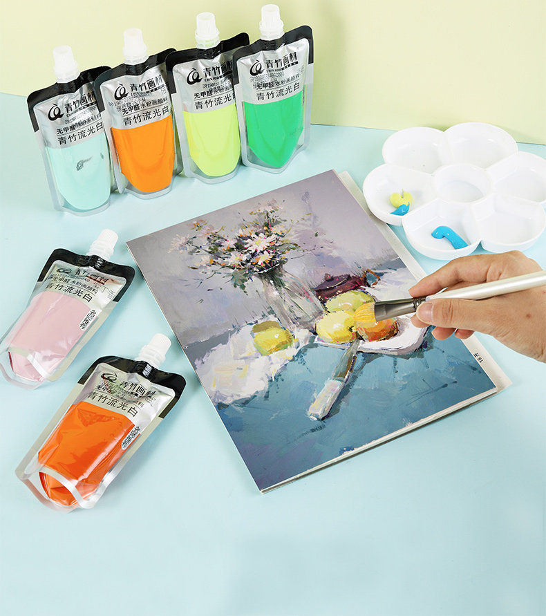 초록 대나무 구 아슈 안료 스트리머 화이트 백 100ml 보충 백 초보자 아트 매직 큐브 컵 단일 교체
