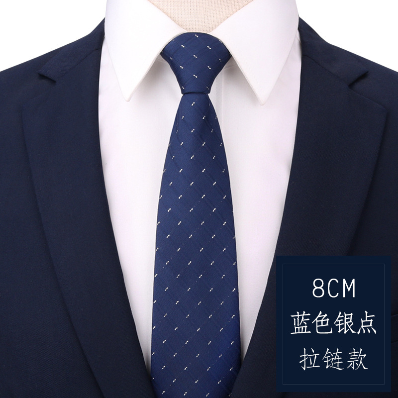 블루 실버 도트 지퍼 넥타이 남자의 원피스 비즈니스 신랑 결혼식 8cm 쉽게 당기기 쉬운 게으른 넥타이 여자스토어 가기