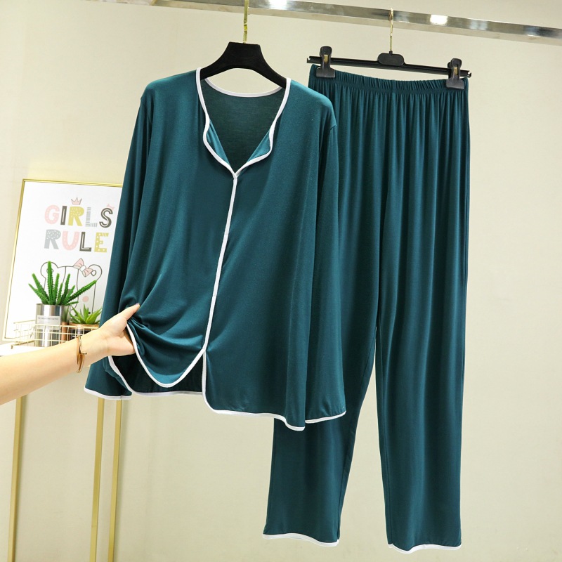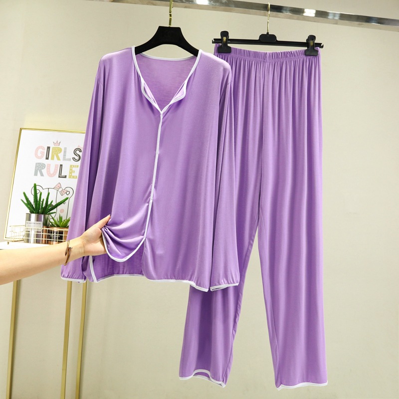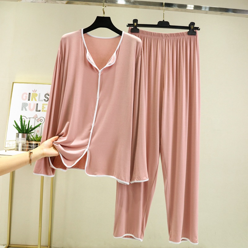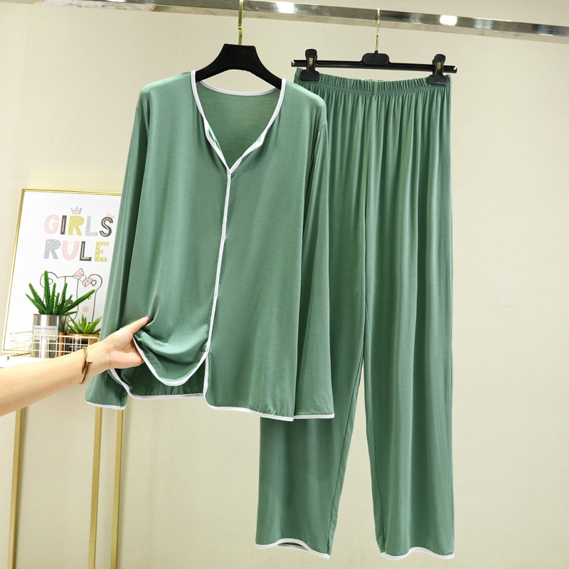 잠옷 여자의 봄과 가을 긴 소매 모달 얇은 봄과 여름 가정 옷 간단한 유행 느슨한 겉옷을 입고 세트