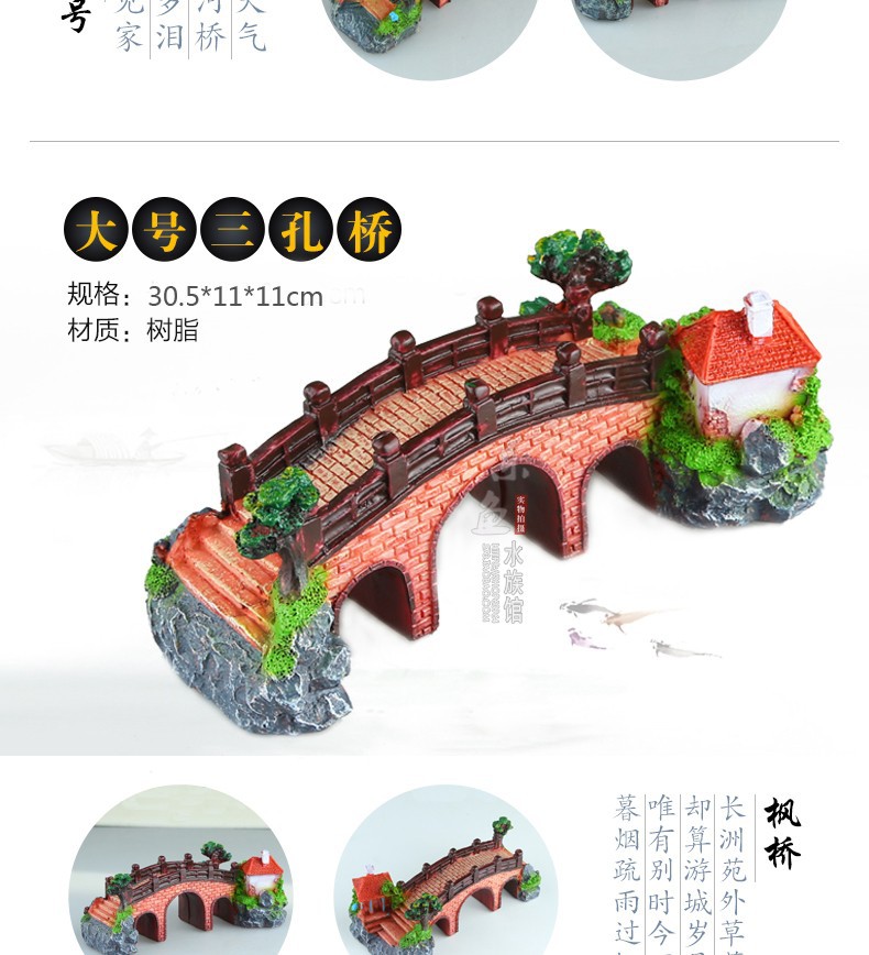 鱼缸金鱼鱼缸内造景摆件里装饰品配件大全小桥假山桥三眼小桥包邮