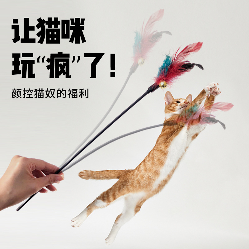 PS:铃铛羽毛逗猫棒,彩色羽毛空中飘啊飘