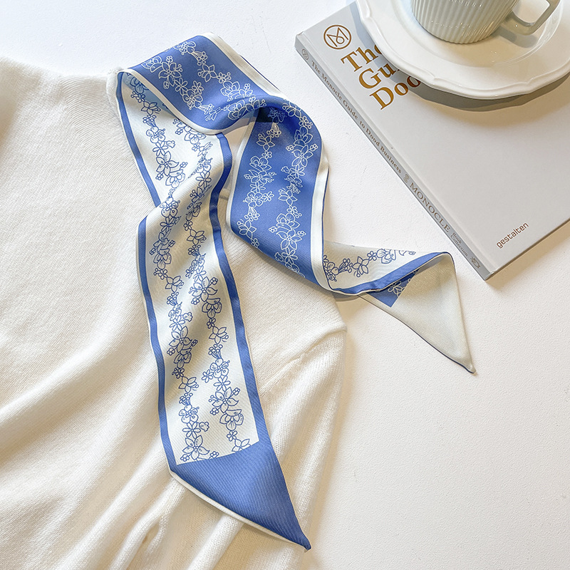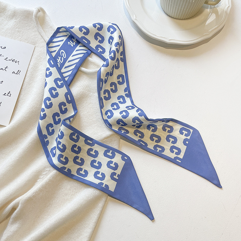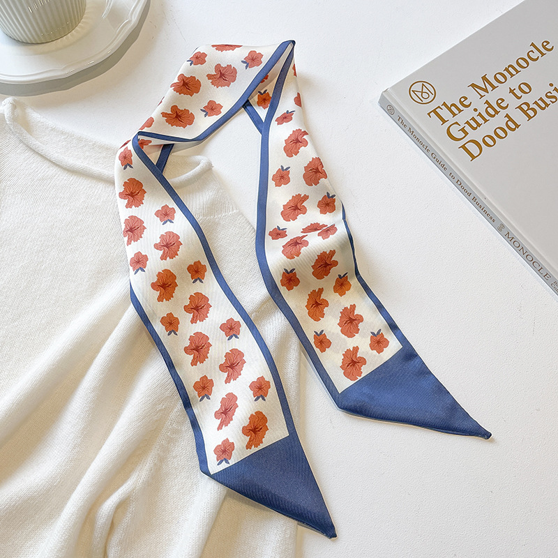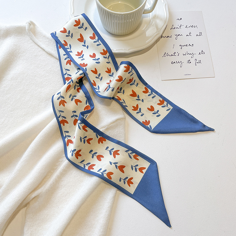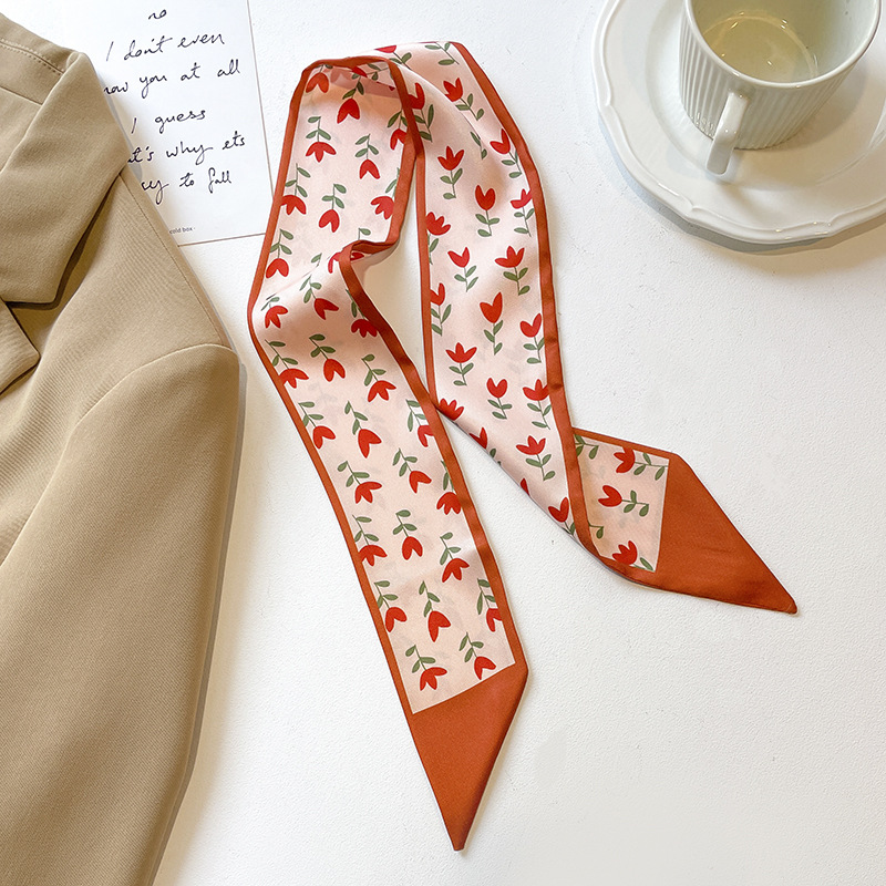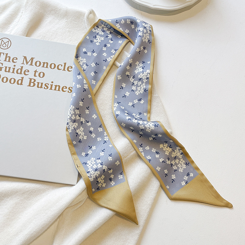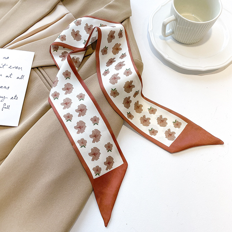 고급 카키 누드 한국 스타일 스타일 스타일 작은 실크 스카프 리본 헤어 스트랩 장식 봄과 가을 전문 스카프스토어 가기