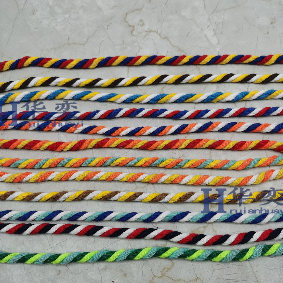 공장 재고 색 6mm 3 색 코튼 로프 혼합 색상 3 가닥 코튼 로프 소프트 로프 수하물 휴대용 로프 코튼 로프스토어 가기