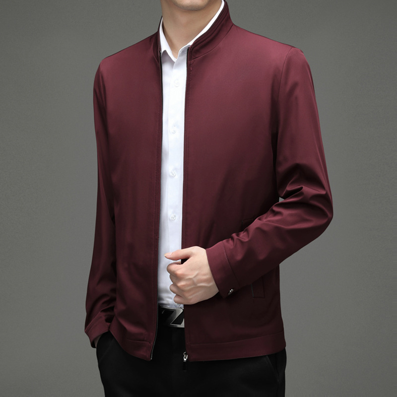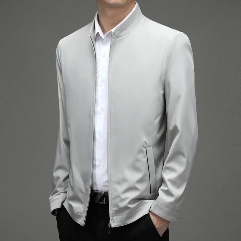 Hunterson 남성용 봄과 가을 새 남성 자켓 단색 스탠드 칼라 지퍼 긴 소매 남성과 아빠를위한 비즈니스 캐주얼 재킷