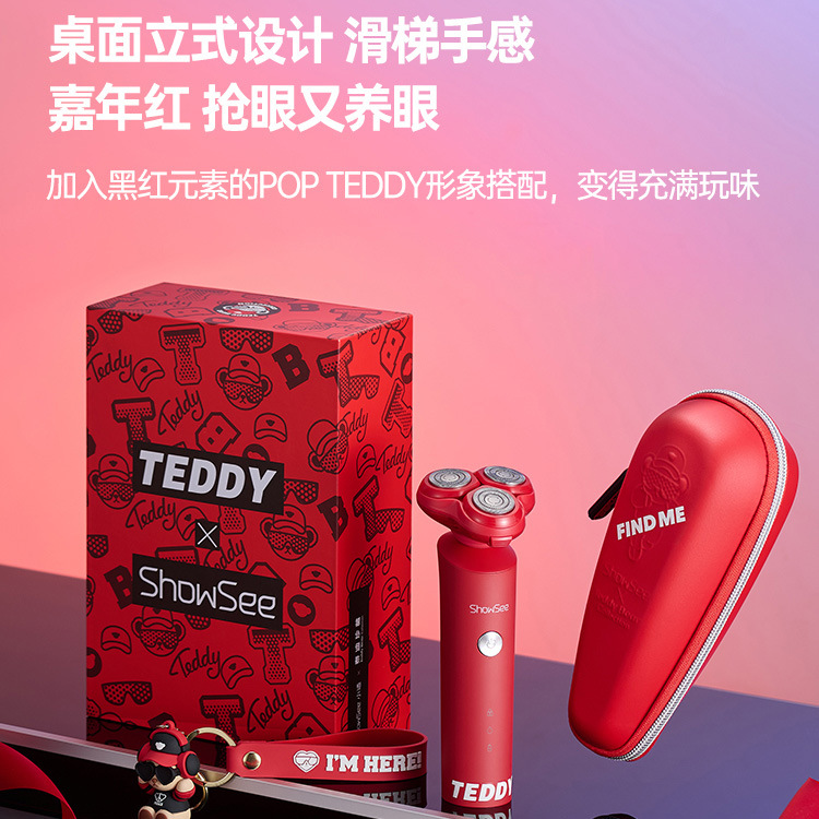 Xiaoshi 테디 공동 브랜드 선물 상자 세트 세척 안티 핀치 면도기 자동 지능형 새로운 F1-R 레드