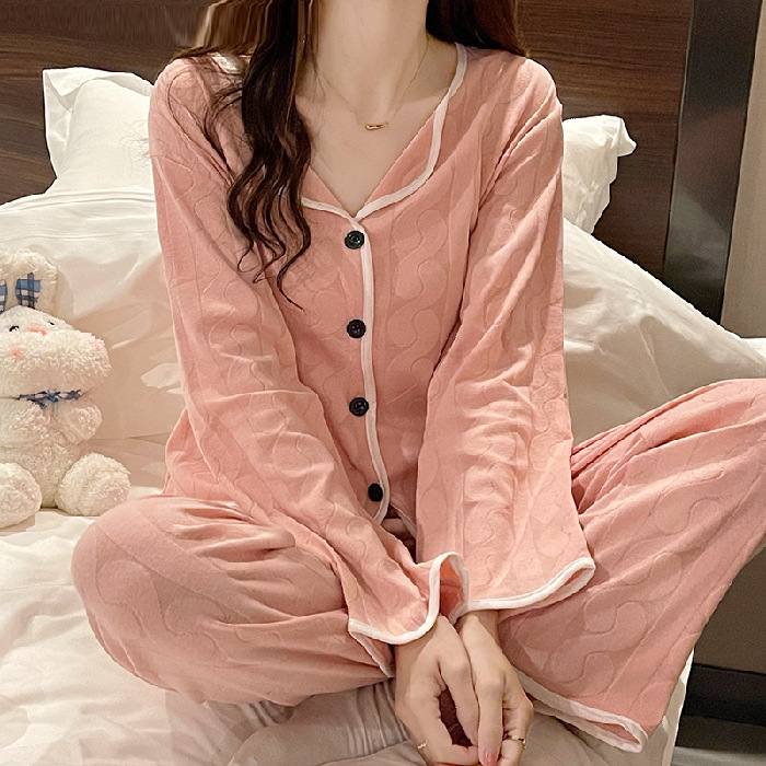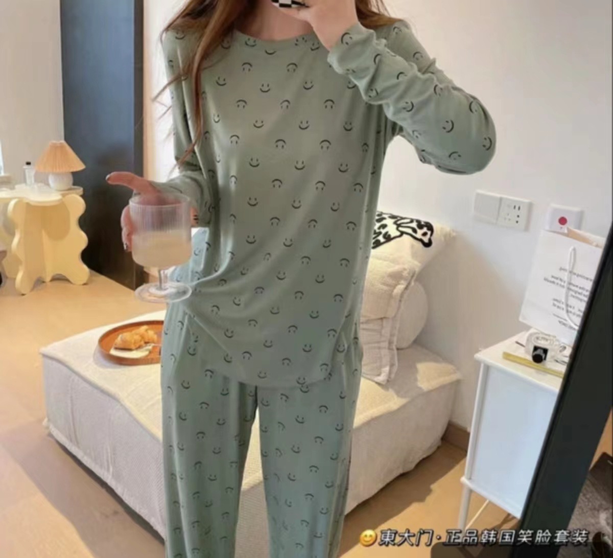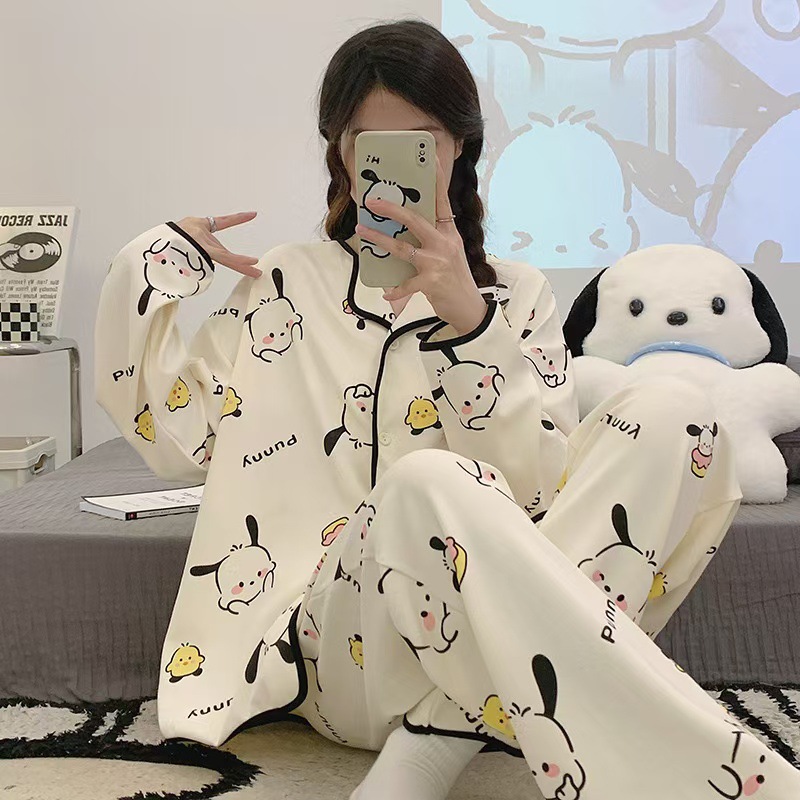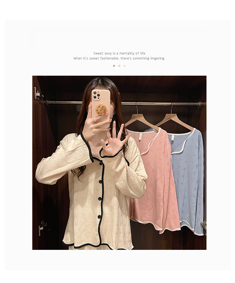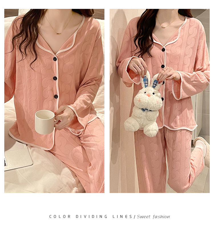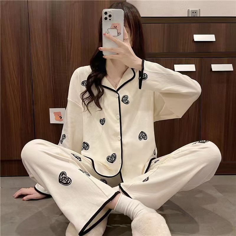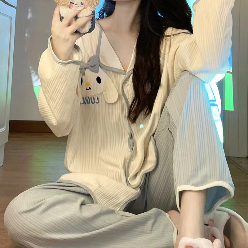여자의 잠옷 가을 긴팔 느슨한 카디건 한국어 달콤한 귀여운 소녀 가정 옷 세트스토어 가기