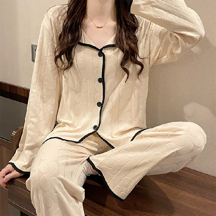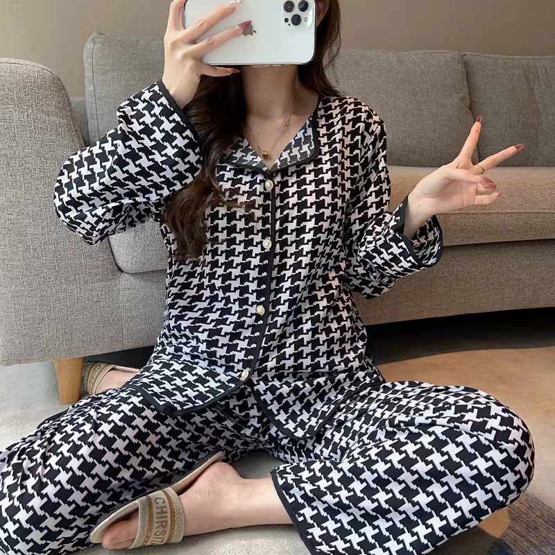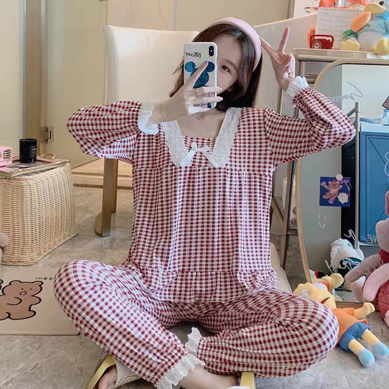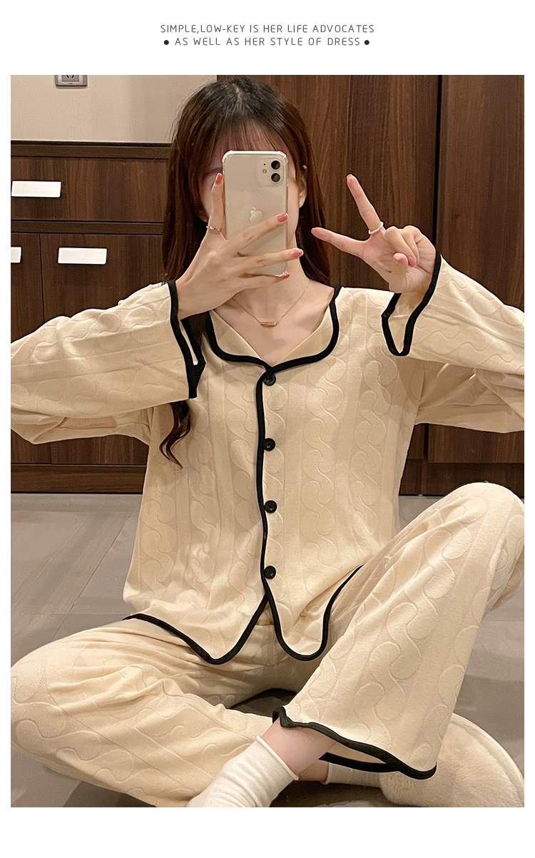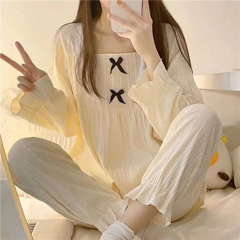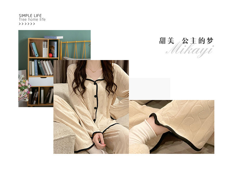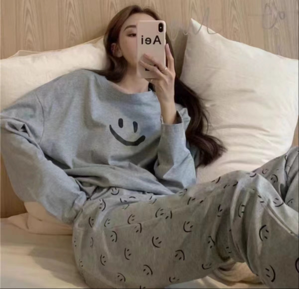 여자의 잠옷 가을 긴팔 느슨한 카디건 한국어 달콤한 귀여운 소녀 가정 옷 세트스토어 가기
