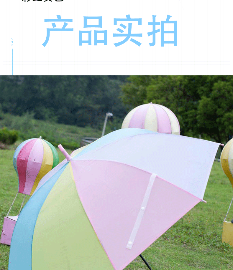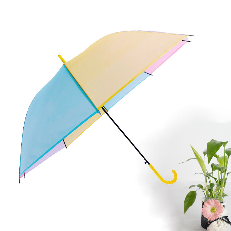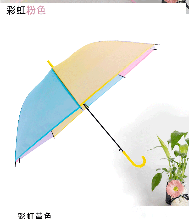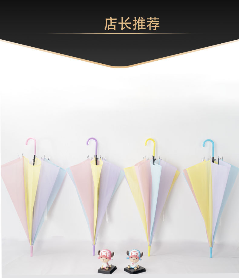 레인보우 컬러 우산 투명 작은 신선한 긴 손잡이 우산 인터넷 인기 소녀 바람 자동 우산 인쇄 광고 우산