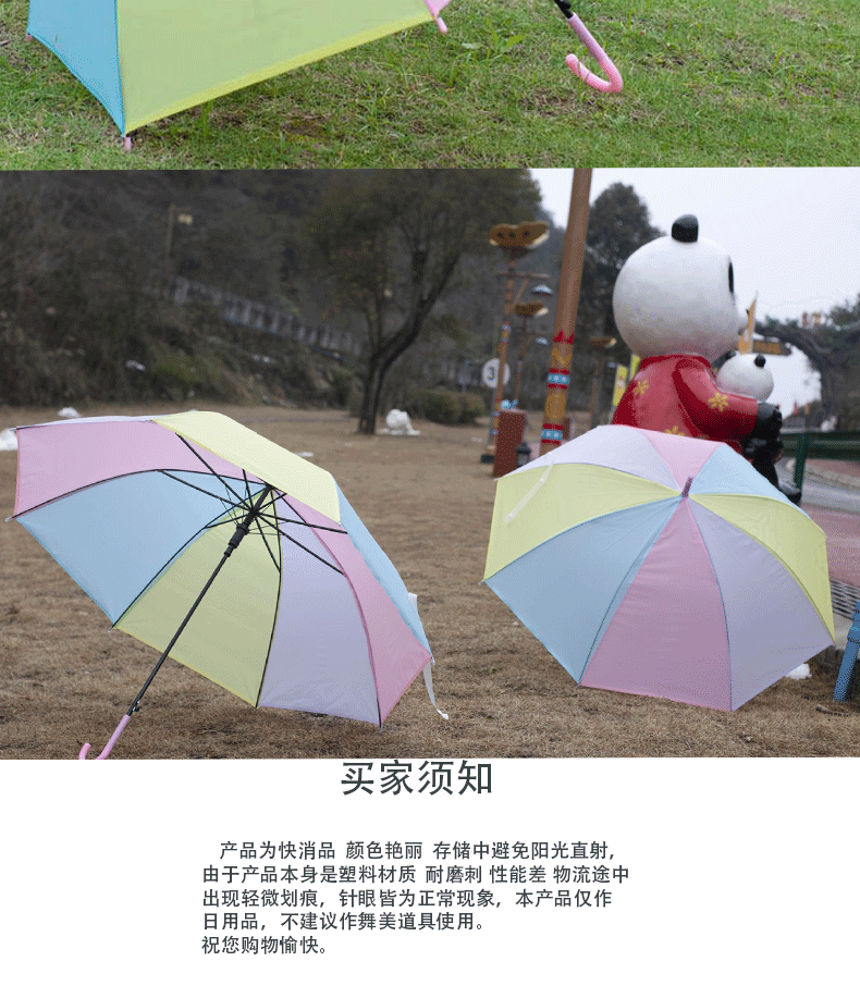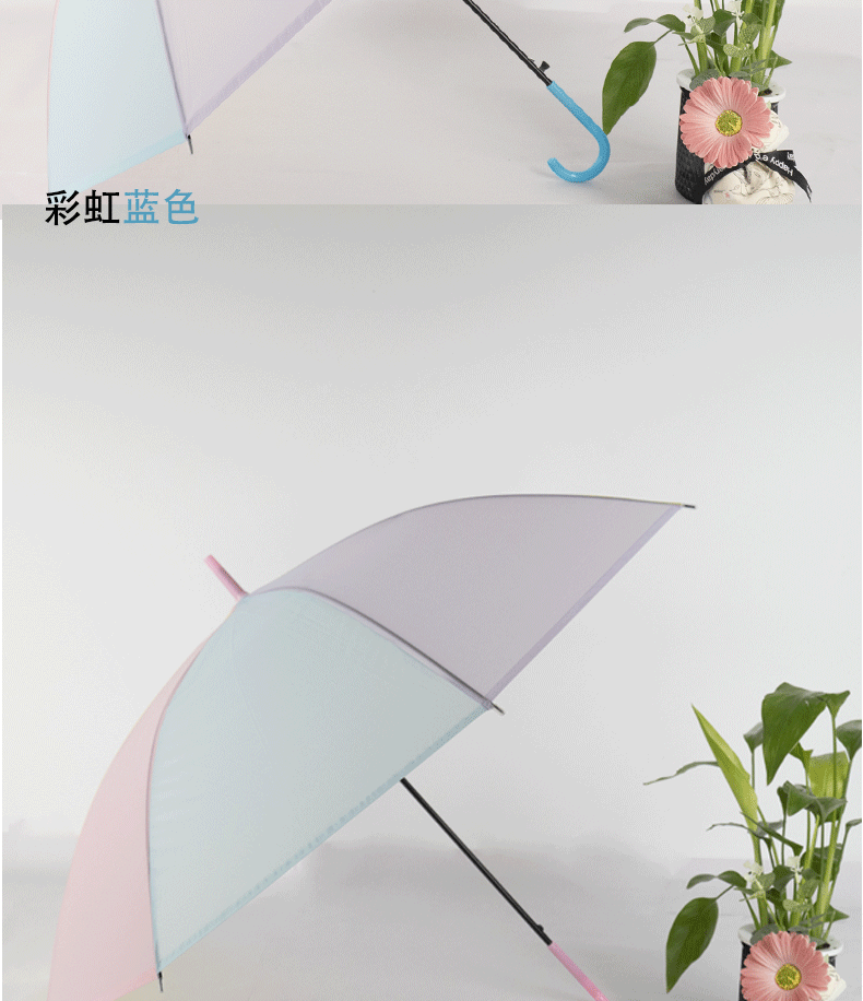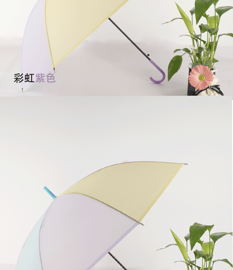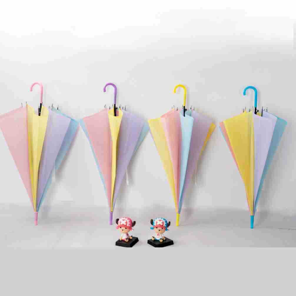 레인보우 컬러 우산 투명 작은 신선한 긴 손잡이 우산 인터넷 인기 소녀 바람 자동 우산 인쇄 광고 우산스토어 가기