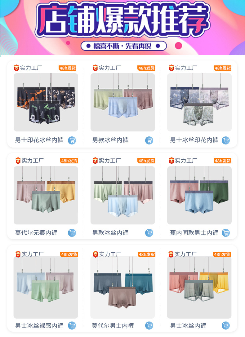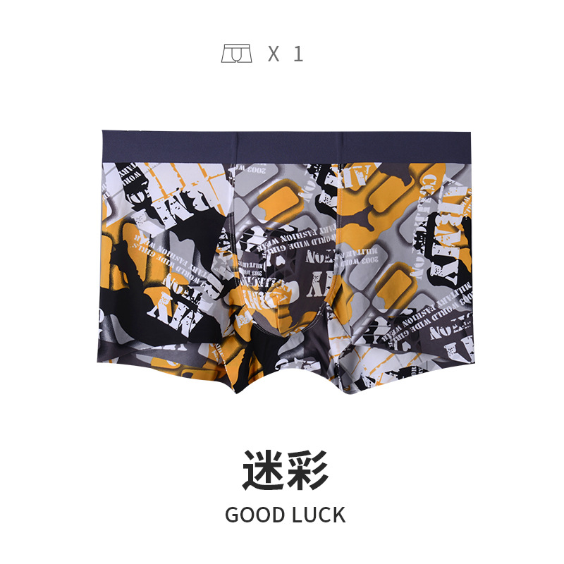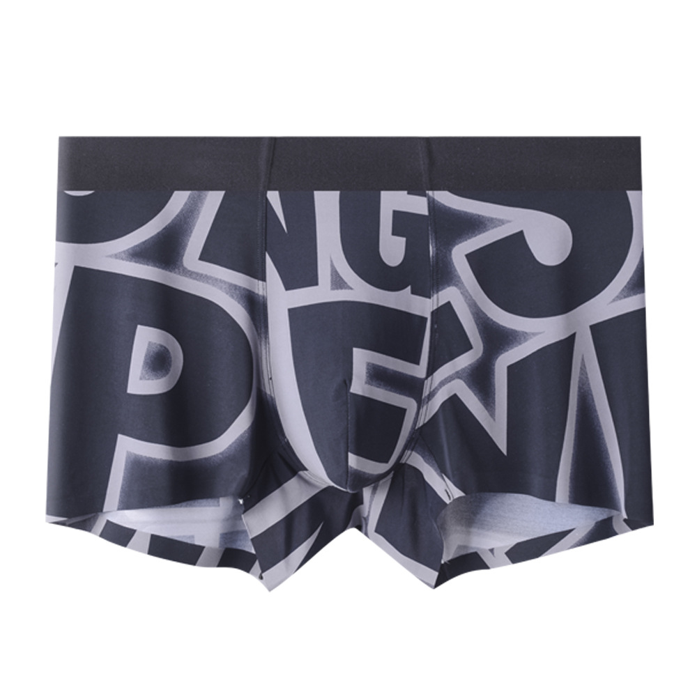 남성용 아이스 실크 속옷 여름 프린트 무봉제 사각팬티 도매 스포츠 통기성 중간 허리 사각팬츠 남성 트렌드 브랜드스토어 가기
