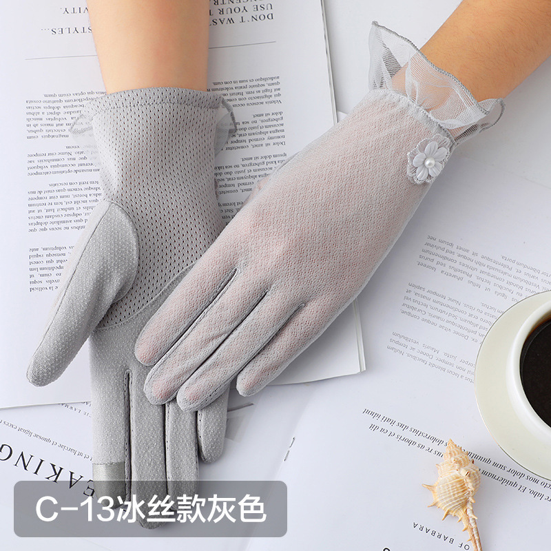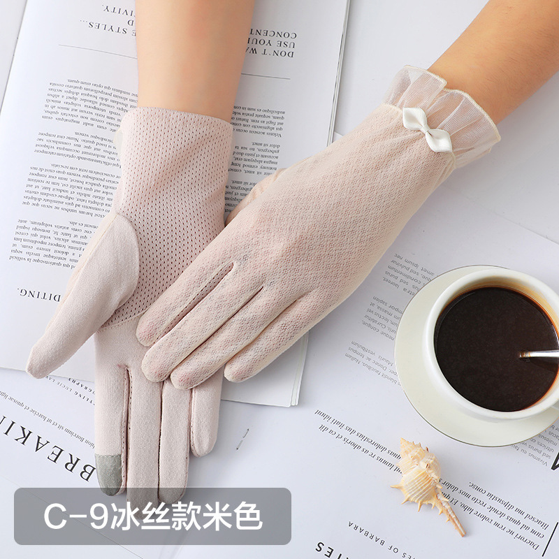 도매 숙녀 레이스 선 스크린 장갑 여름 얼음 실크 장갑 야외 여행 승마 운전 모조 슬립 터치 스크린 장갑
