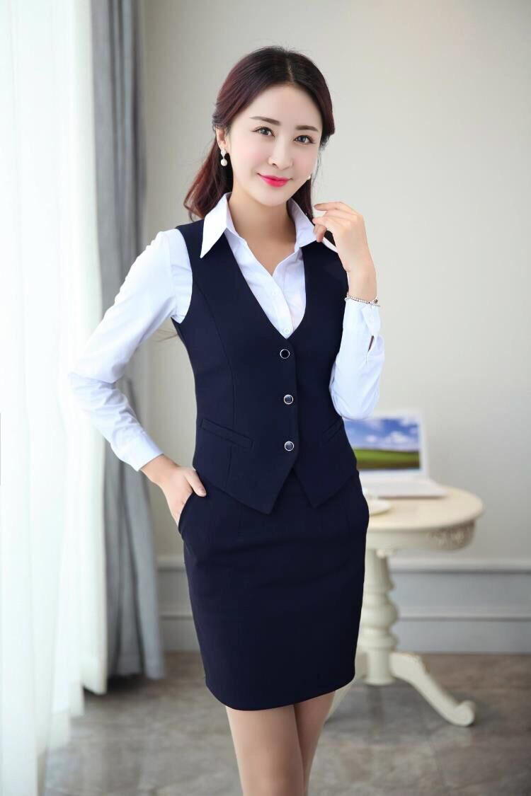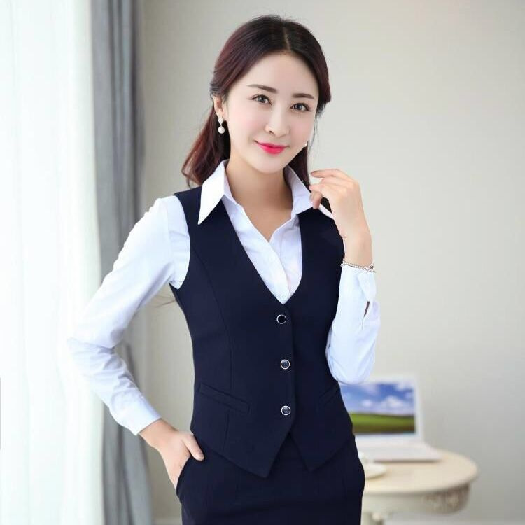 가을 전문 세트 조끼 세트 여자의 사무실 작업복 조끼 슬림 핏 인터뷰 정장 조끼 여자