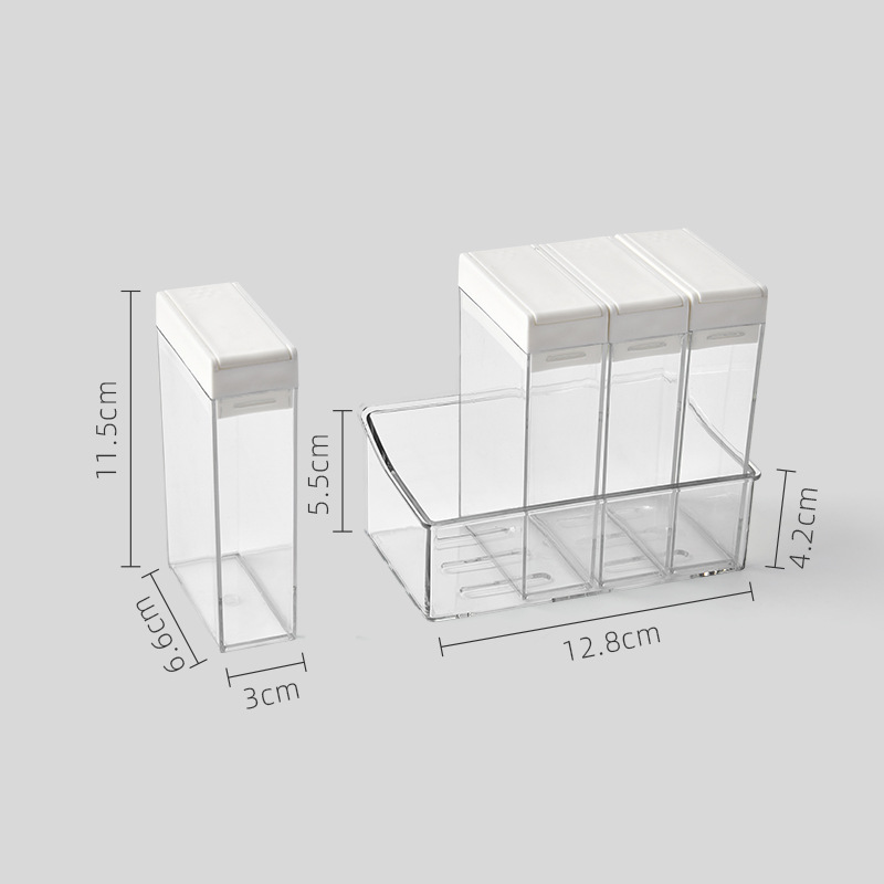 조미료 상자 가정용 플라스틱 투명 4 구획 조미료 항아리 세트 주방 용품 MSG 소금 항아리 조미료 저장 상자스토어 가기