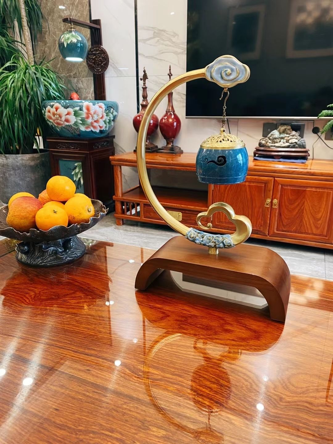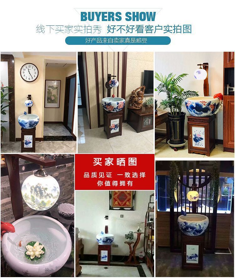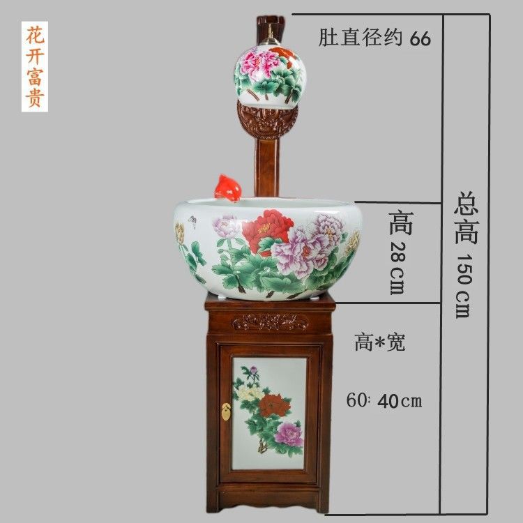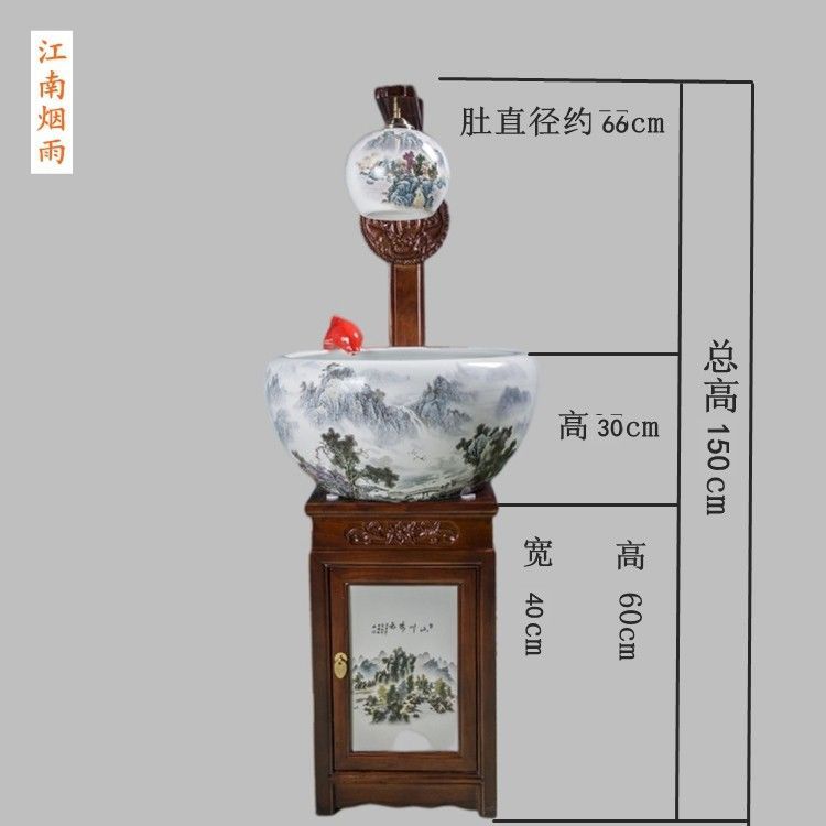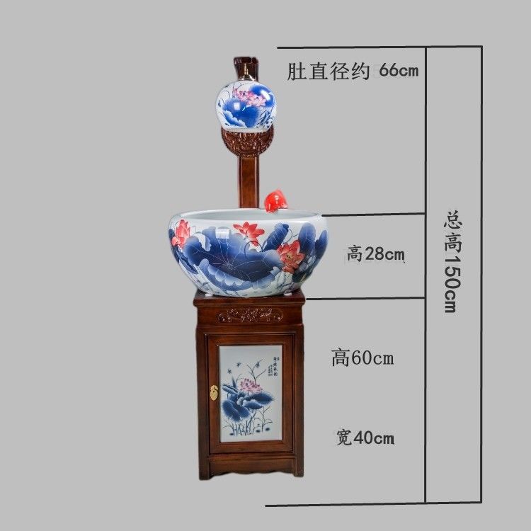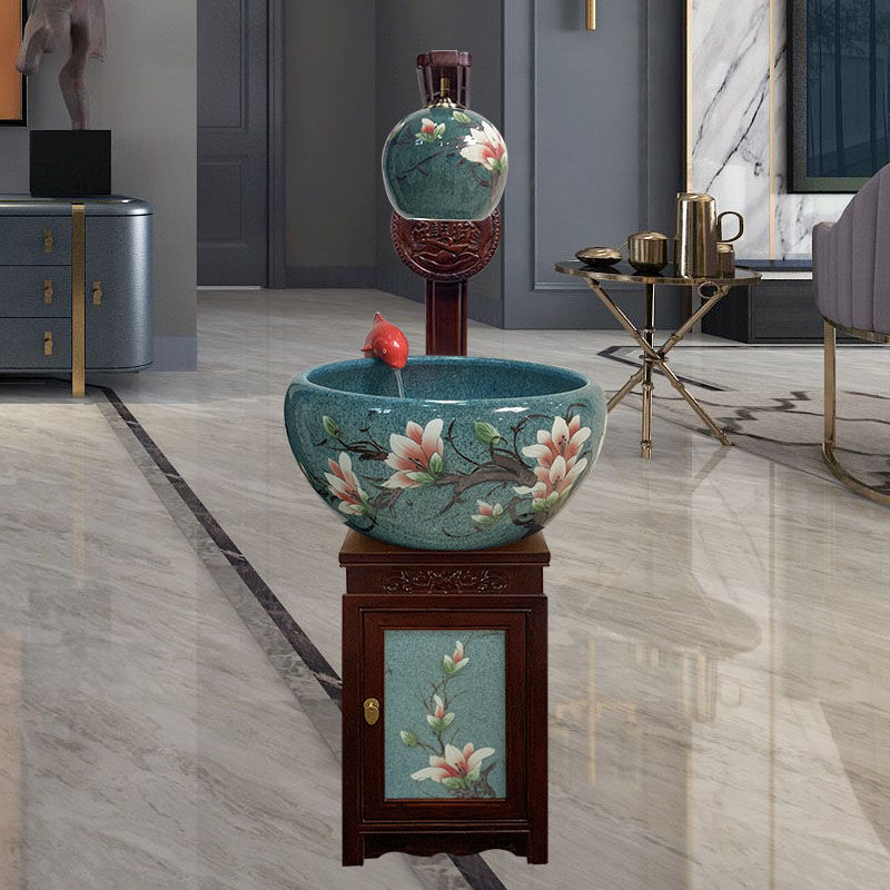 절묘한 목련 난초 세라믹 캐비닛 금붕어 탱크 바닥 스탠딩 세라믹 물고기 문화 분지 바람 물 탱크 가정용 순환 물 스프레이 거실스토어 가기