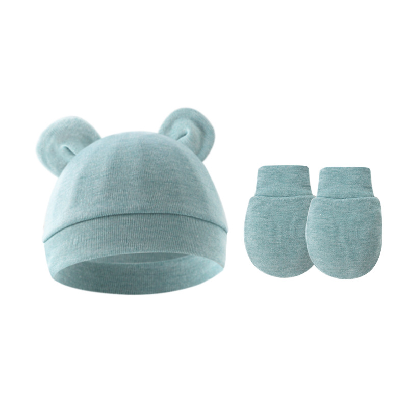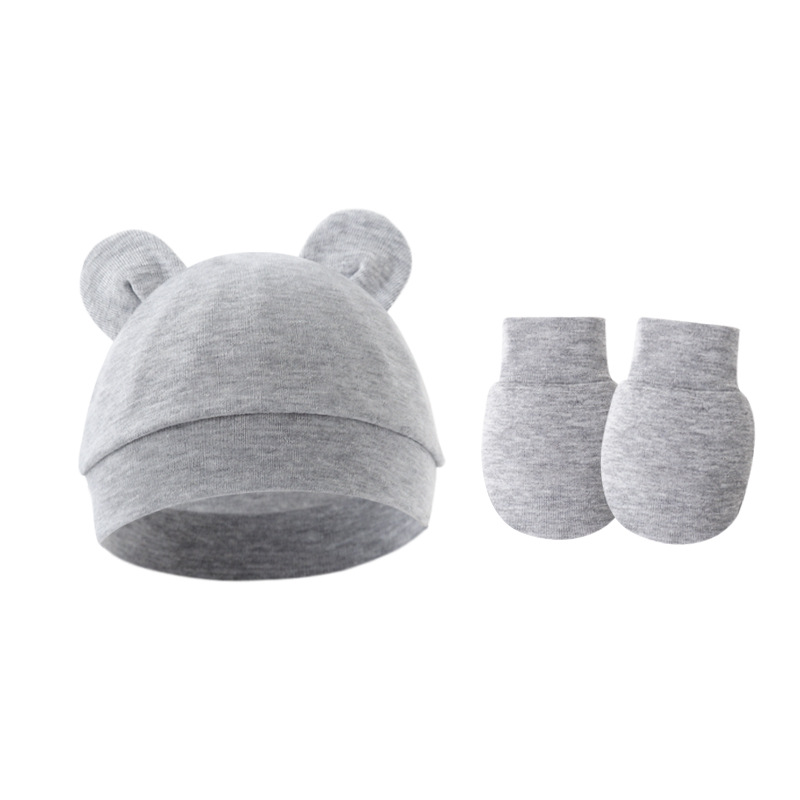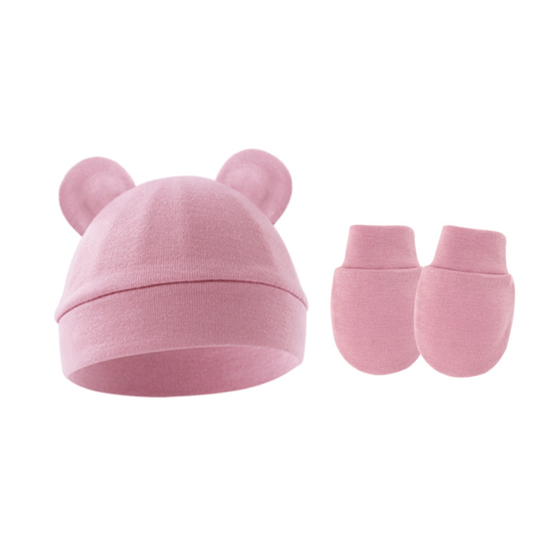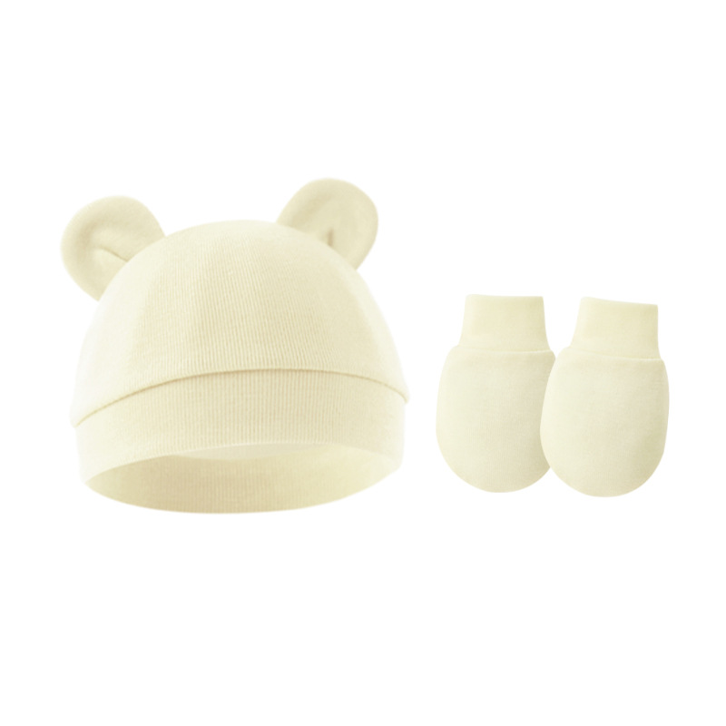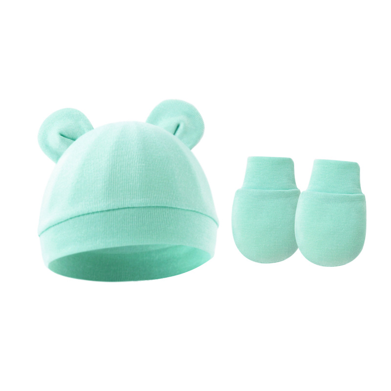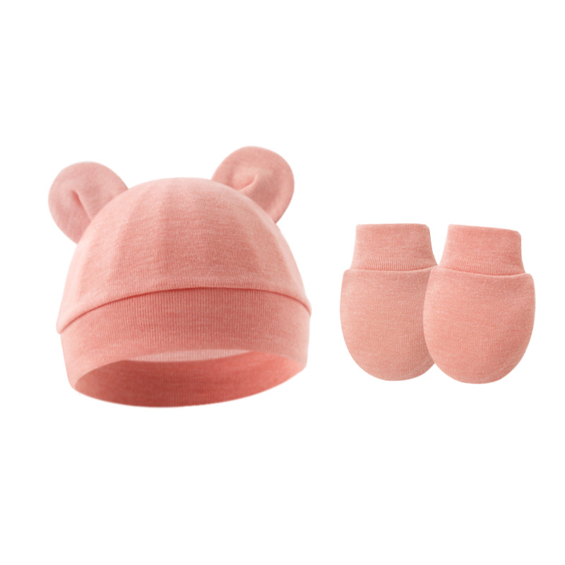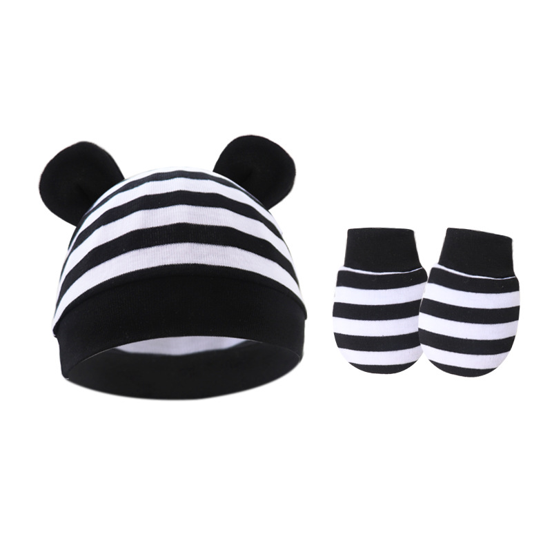 2023 대외 무역 아기 풀오버 모자 미키 귀 아기 모자 신생아 태아 모자 긁힘 방지 장갑 2 종 세트