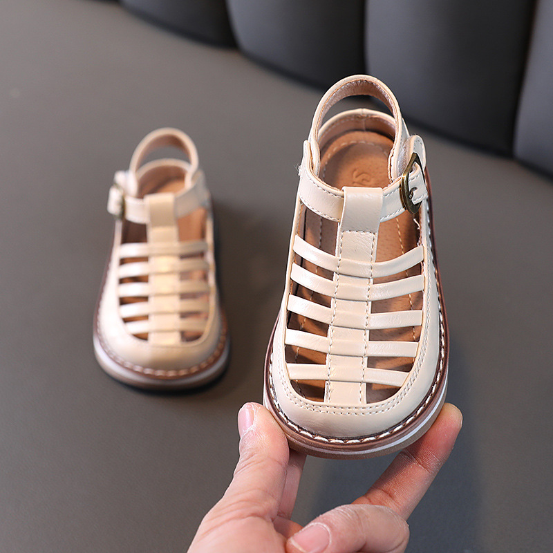 여아 공주 신발 어린이 가죽 신발 2024 봄 여름 신상품 빈티지 스타일 신발 어린 소녀 반샌들 유아 신발스토어 가기