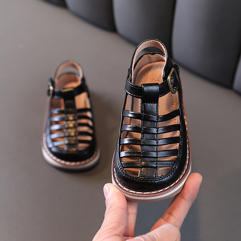 여아 공주 신발 어린이 가죽 신발 2024 봄 여름 신상품 빈티지 스타일 신발 어린 소녀 반샌들 유아 신발