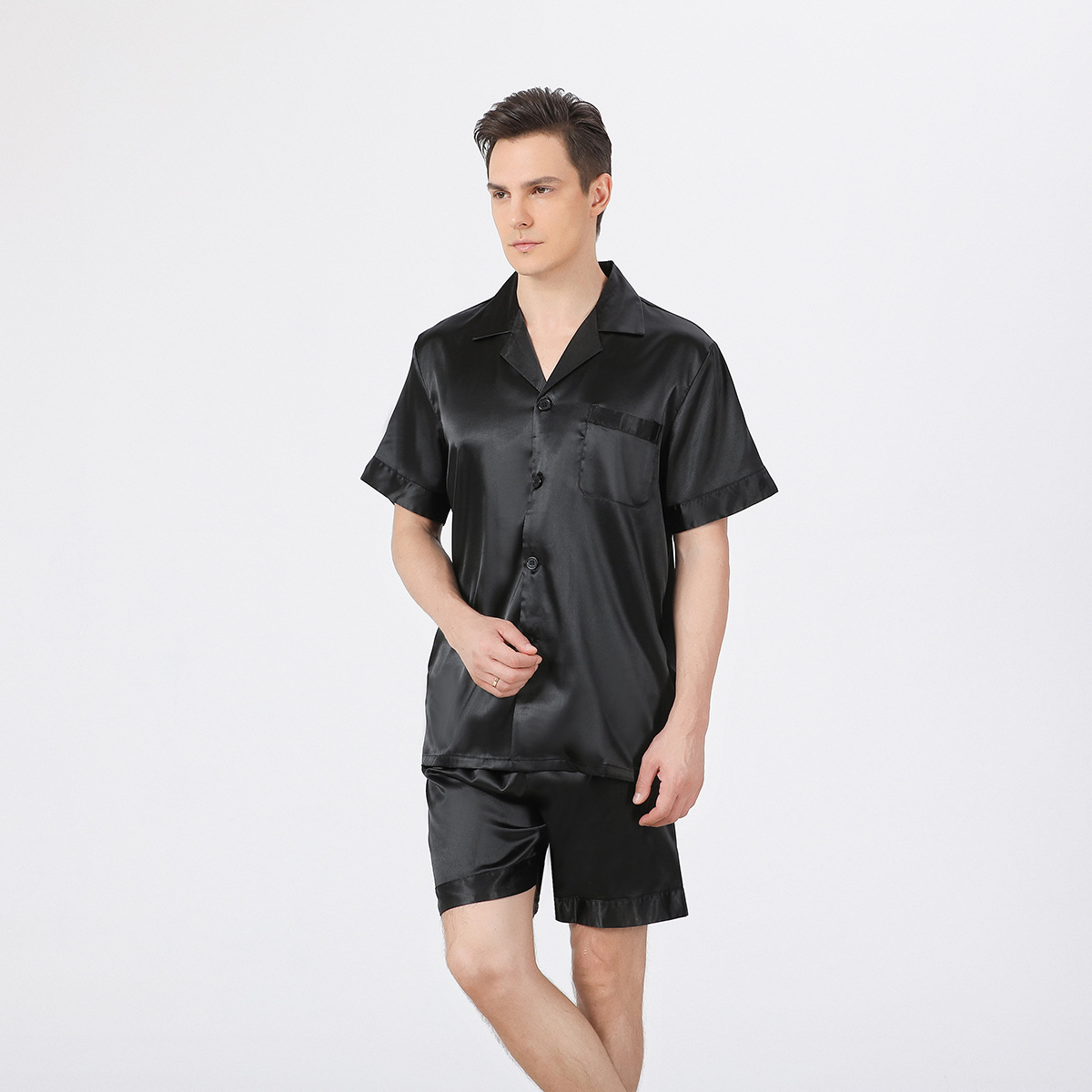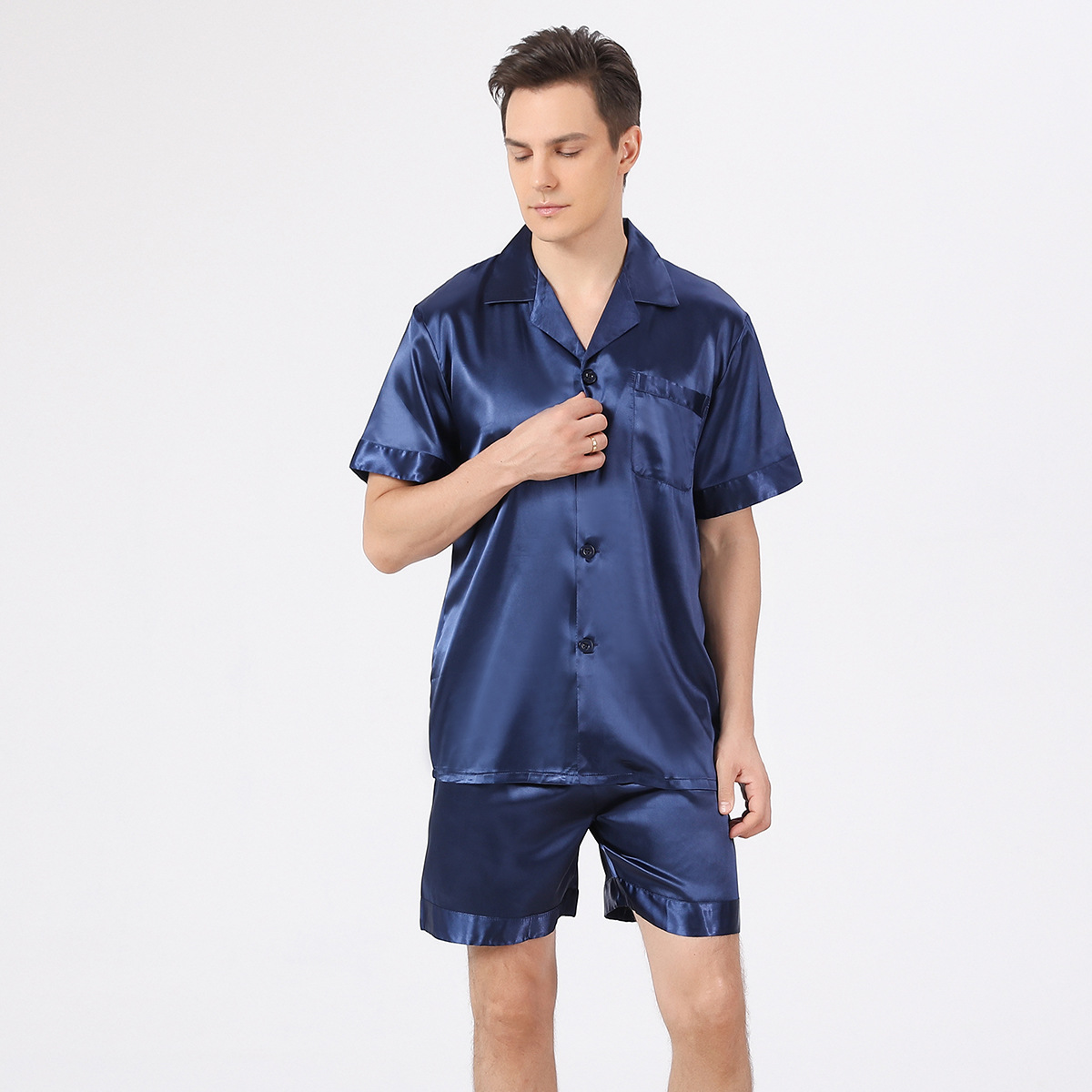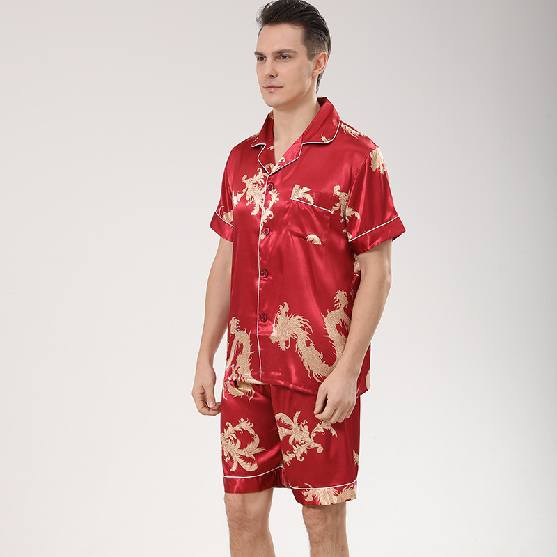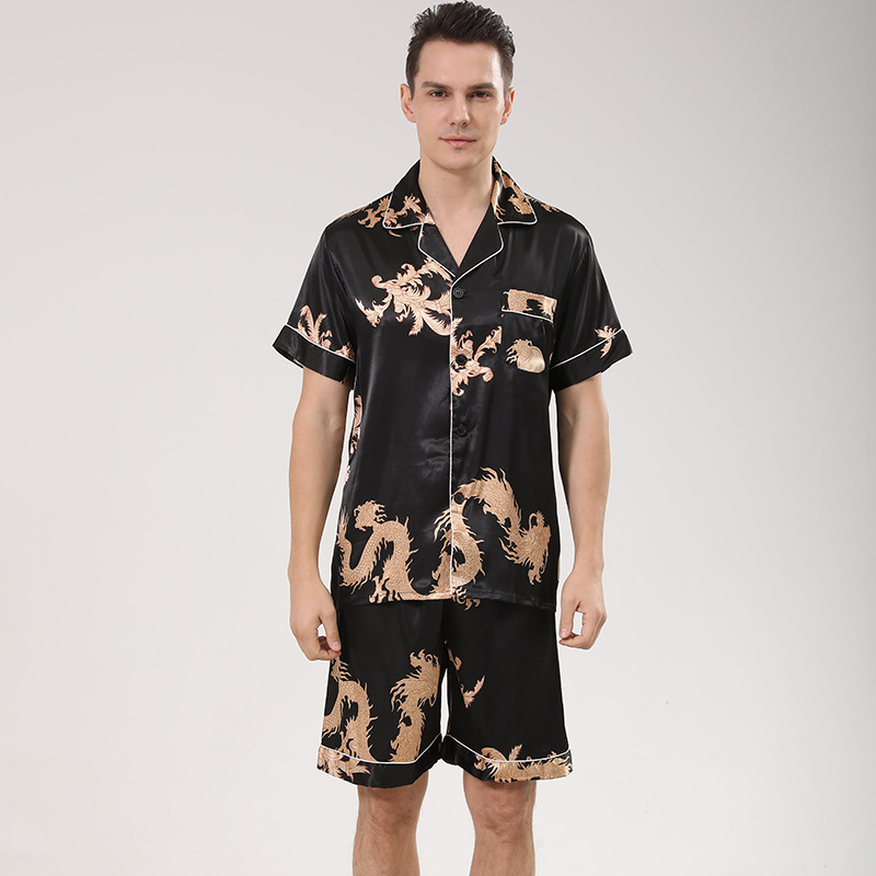 남성용 여름 프린트 반팔 반바지, 대형 잠옷, 남성용 여름 정장, 남성용 실크 홈웨어, 편안하고 통기성이 좋습니다.