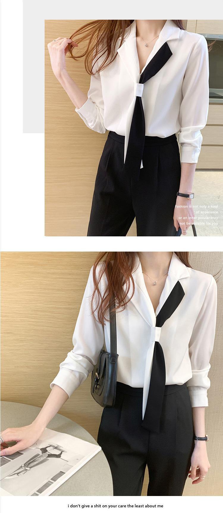 쉬폰 화이트 셔츠 여성의 디자인 감각 틈새 세트 칼라 셔츠 흑백 대비 색상 우아한 전문 서양 스타일 탑스토어 가기