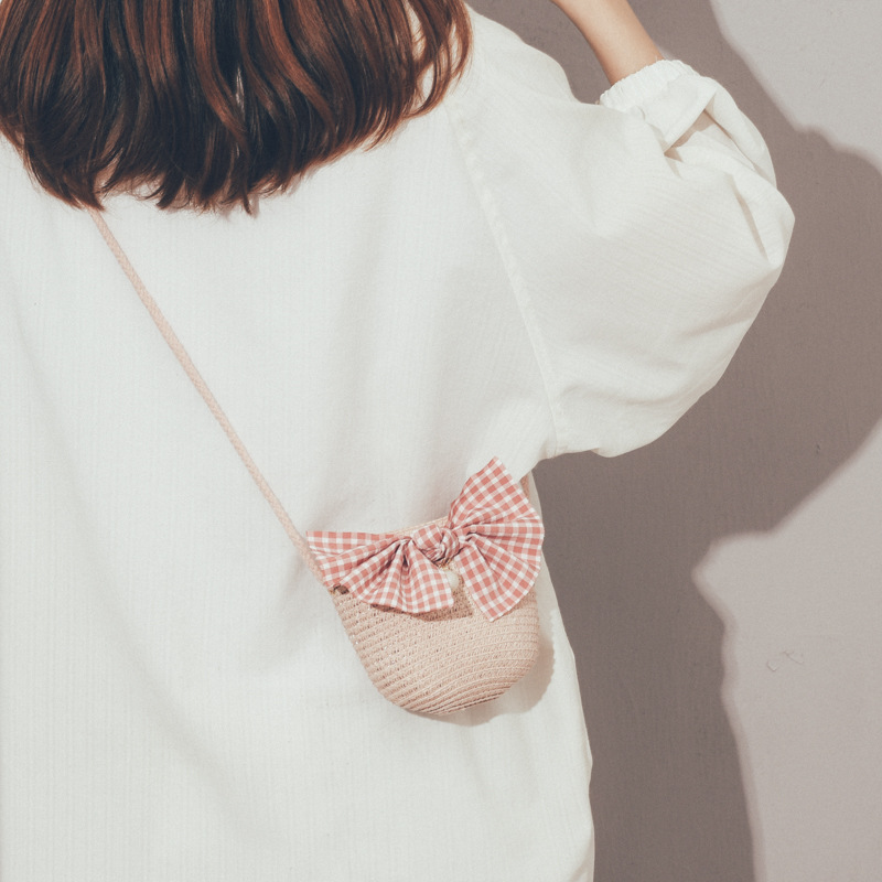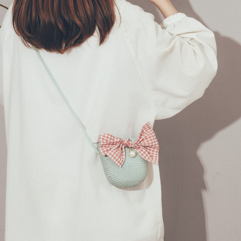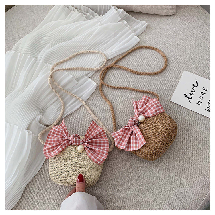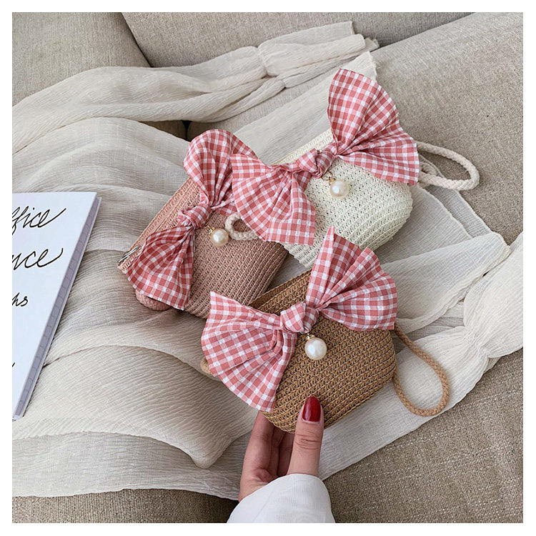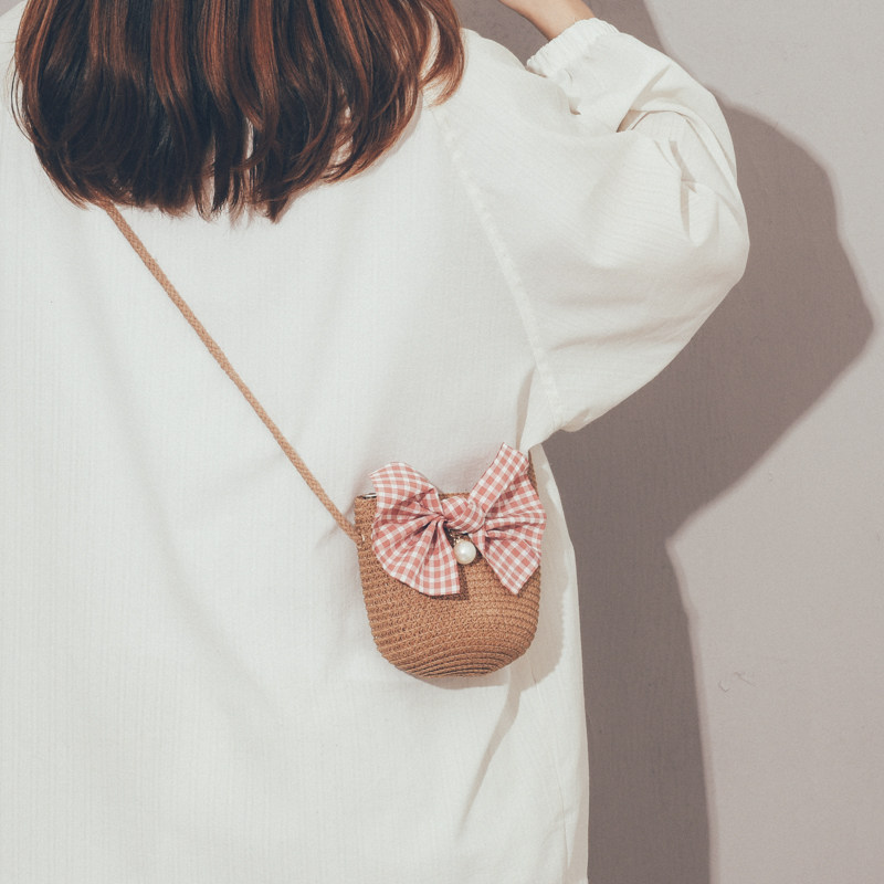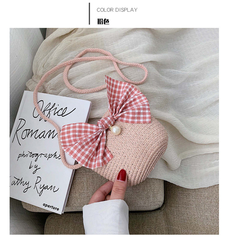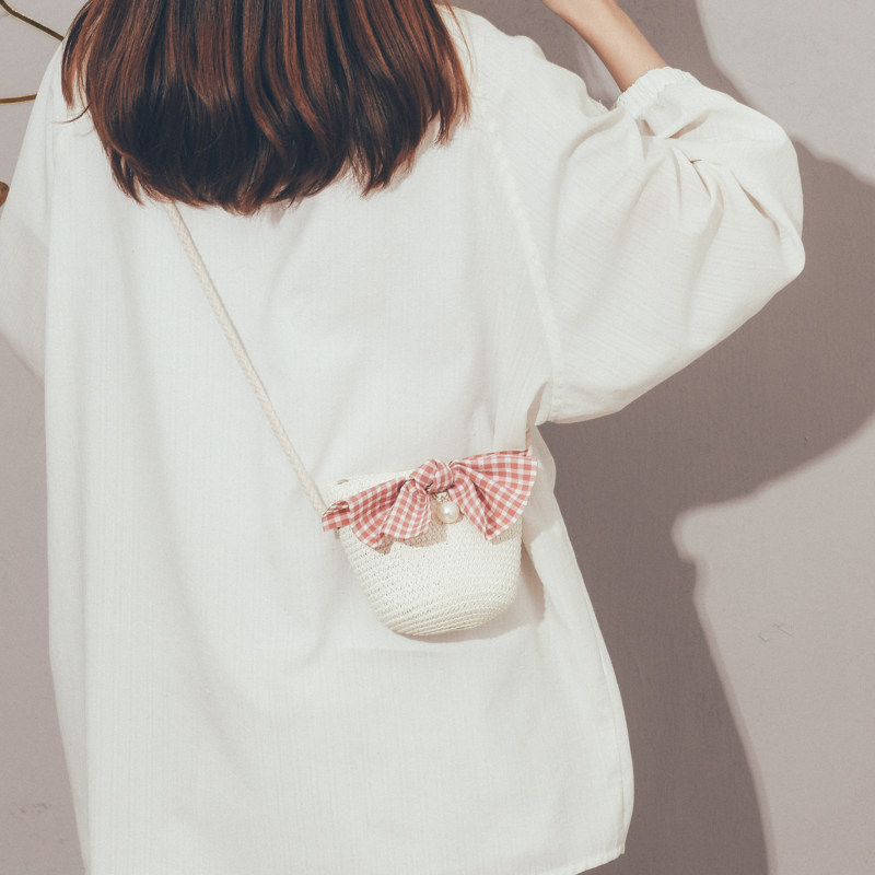 모리 소녀의 수제 밀짚 미니 백 여성의 새로운 신선한 스타일 보우 페어리 크로스 바디 백 여성의 머리카락