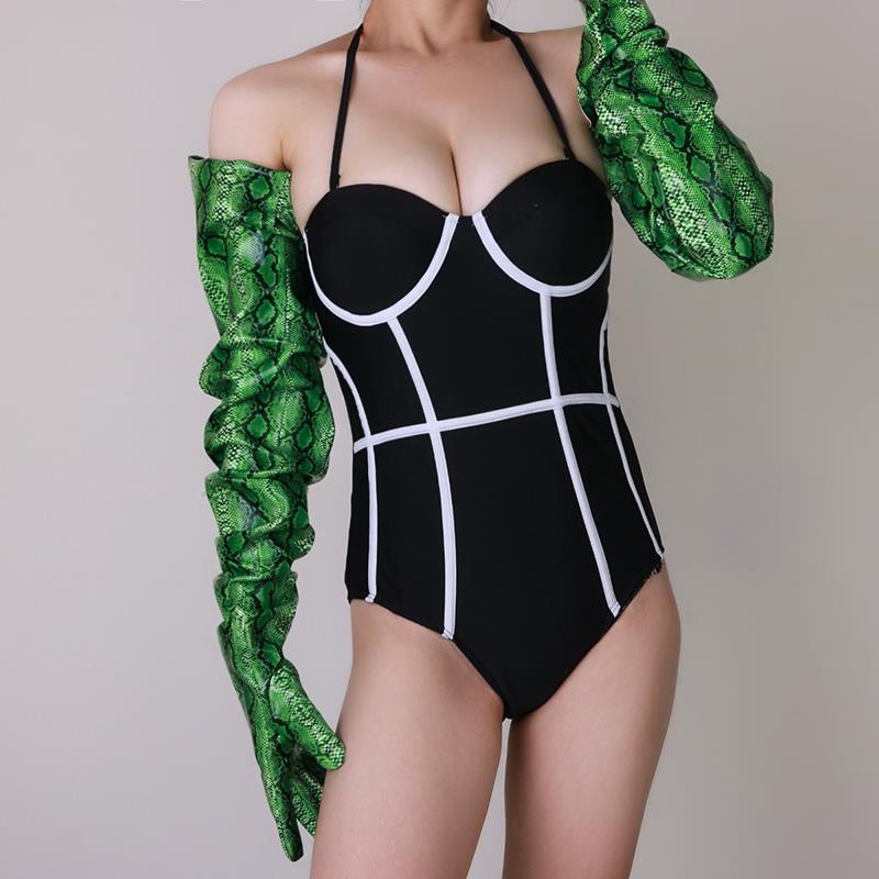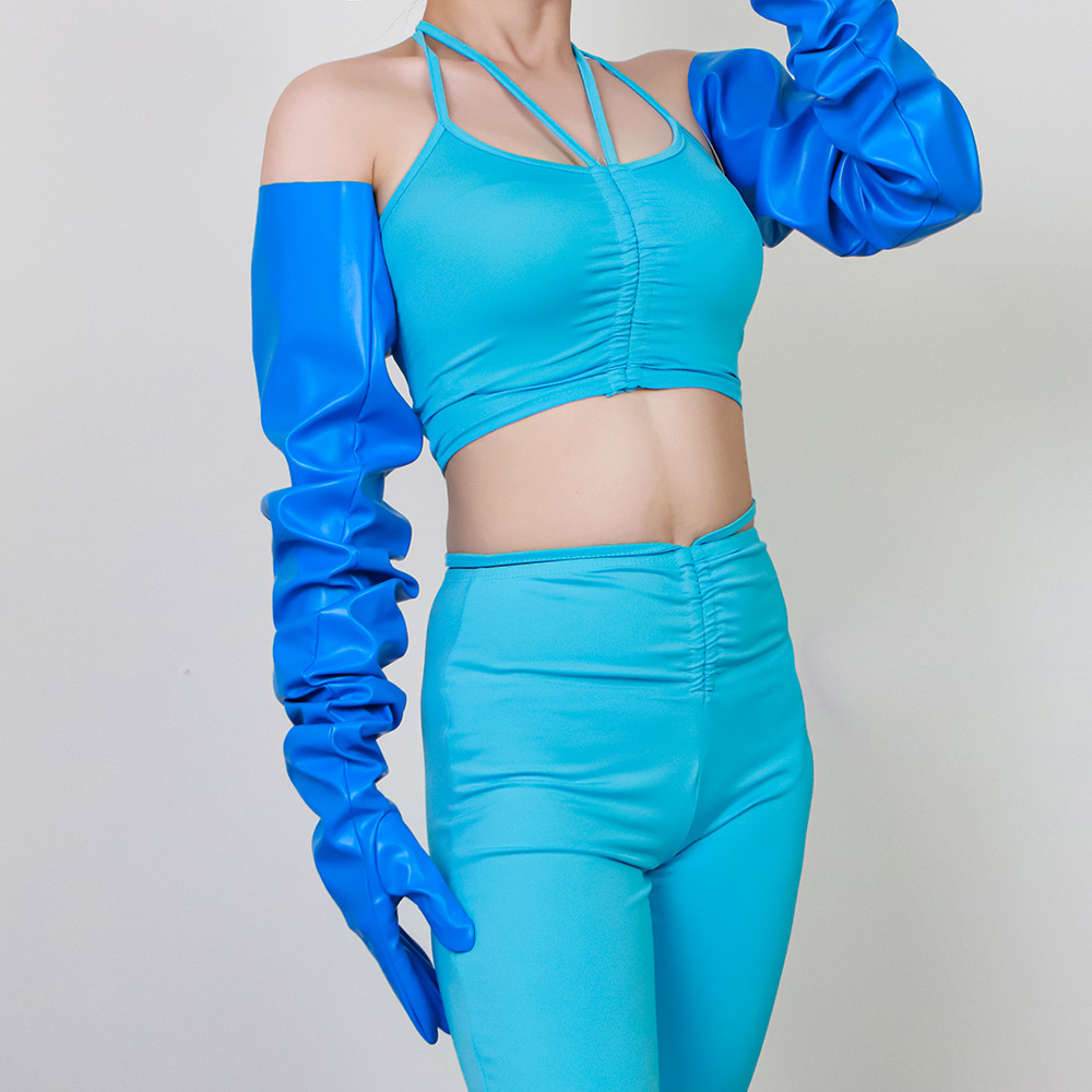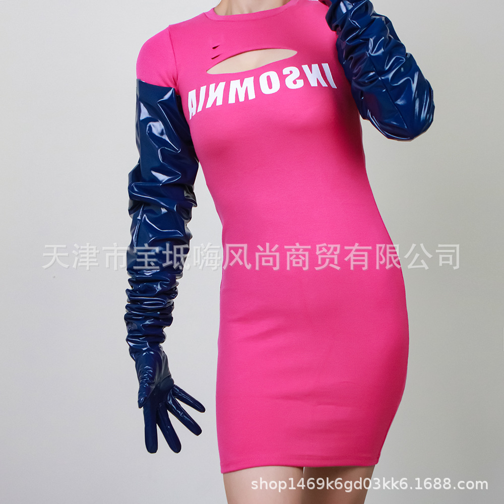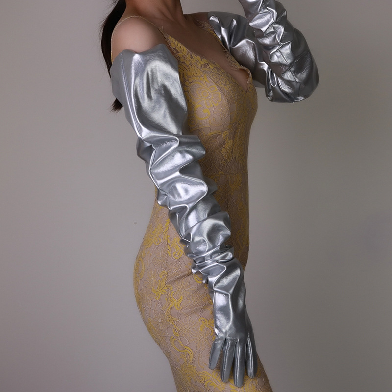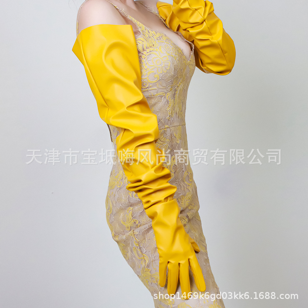 터치 스크린 가죽 슈퍼 롱 장갑 90cm 대형 소매 느슨한 스택 소매 남성과 여성을위한 블랙 섹시한 나이트 클럽 사진 cos