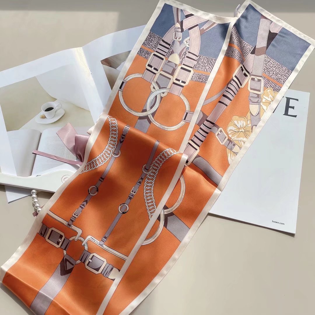 가죽 공제 연령 감소 모든 매치 뽕나무 실크 스카프 봄과 여름 긴 양면 진짜 스카프 얇은 좁은 긴 스카프 리본스토어 가기