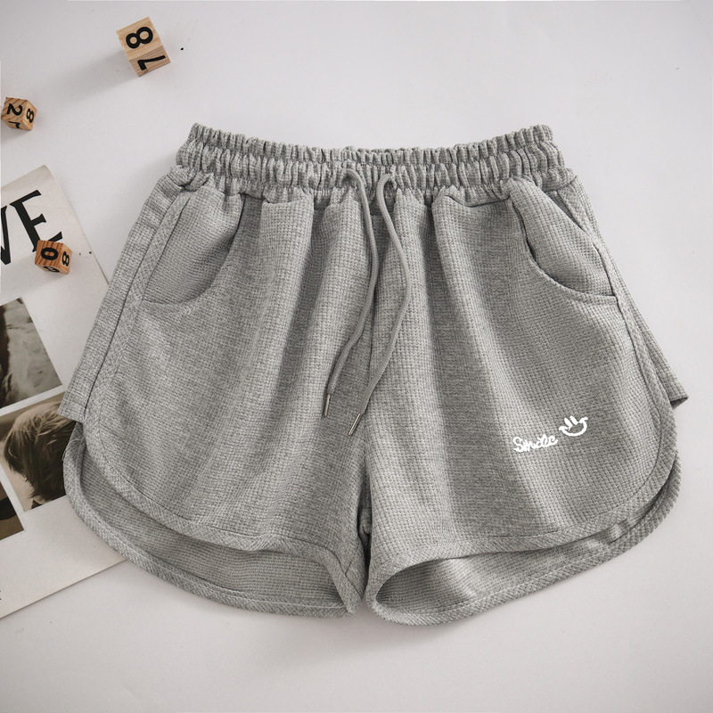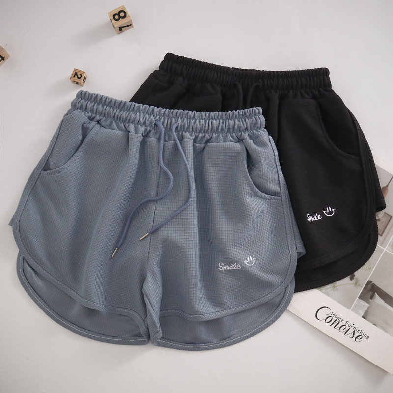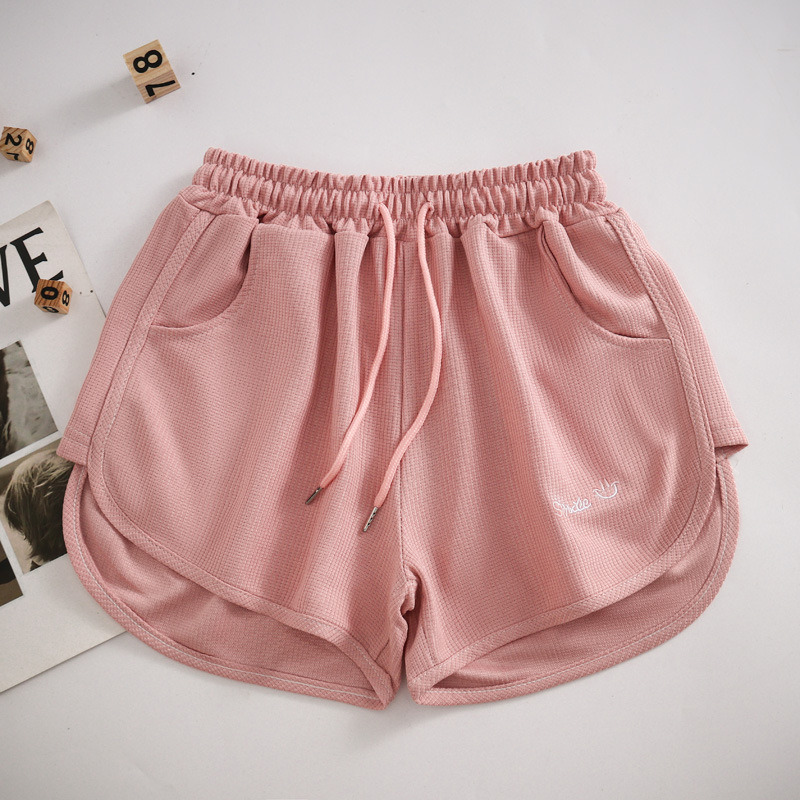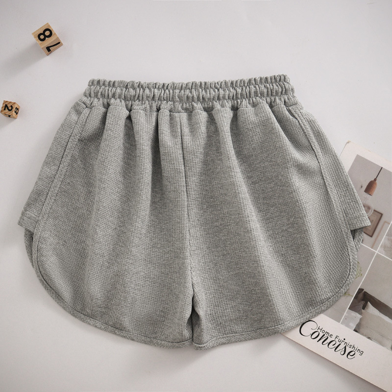 여성용 와플 스포츠 반바지 2025 여름 한국 스타일 신축성 있는 허리밴드 루즈핏 슬림 A라인 와이드 레그 핫팬츠 홈웨어스토어 가기