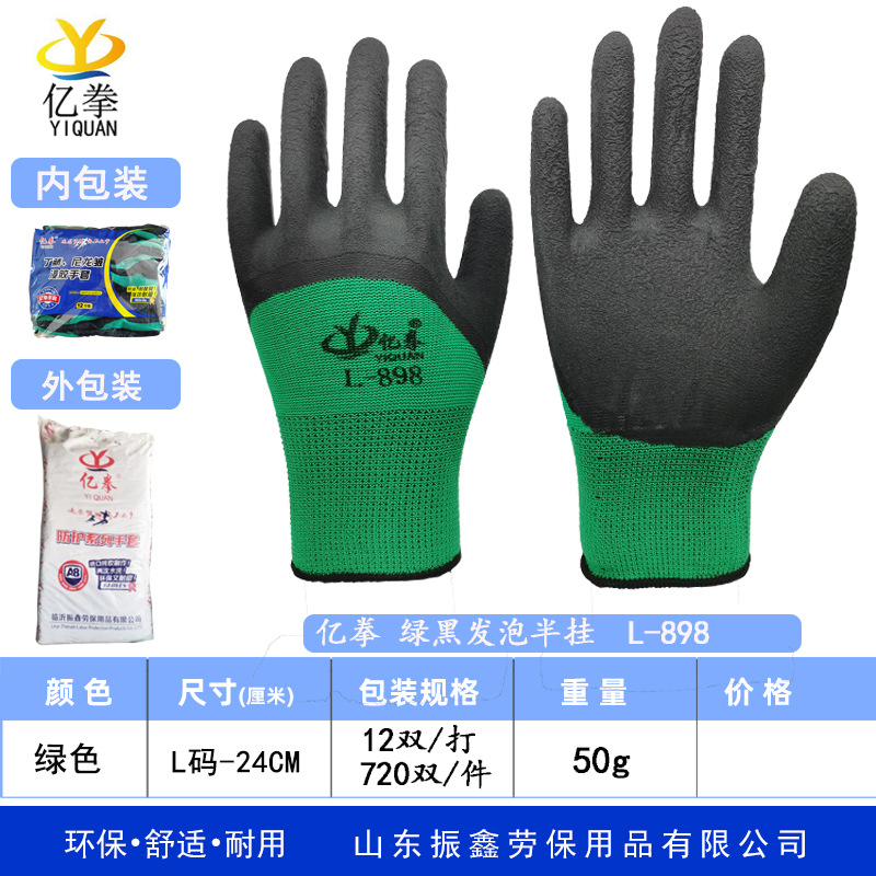 폴리에스터 나일론 커피색 거품 반장갑 노동 보호 장갑 내마모성 고무 코팅 장갑 미끄럼 방지 내마모성
