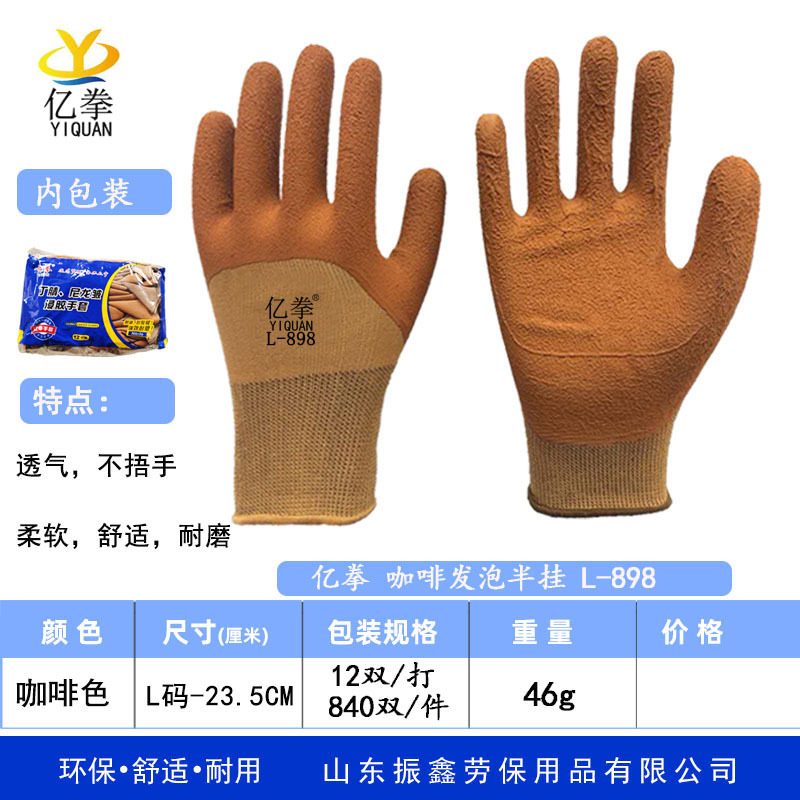 폴리에스터 나일론 커피색 거품 반장갑 노동 보호 장갑 내마모성 고무 코팅 장갑 미끄럼 방지 내마모성스토어 가기