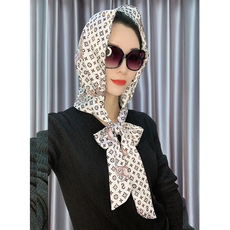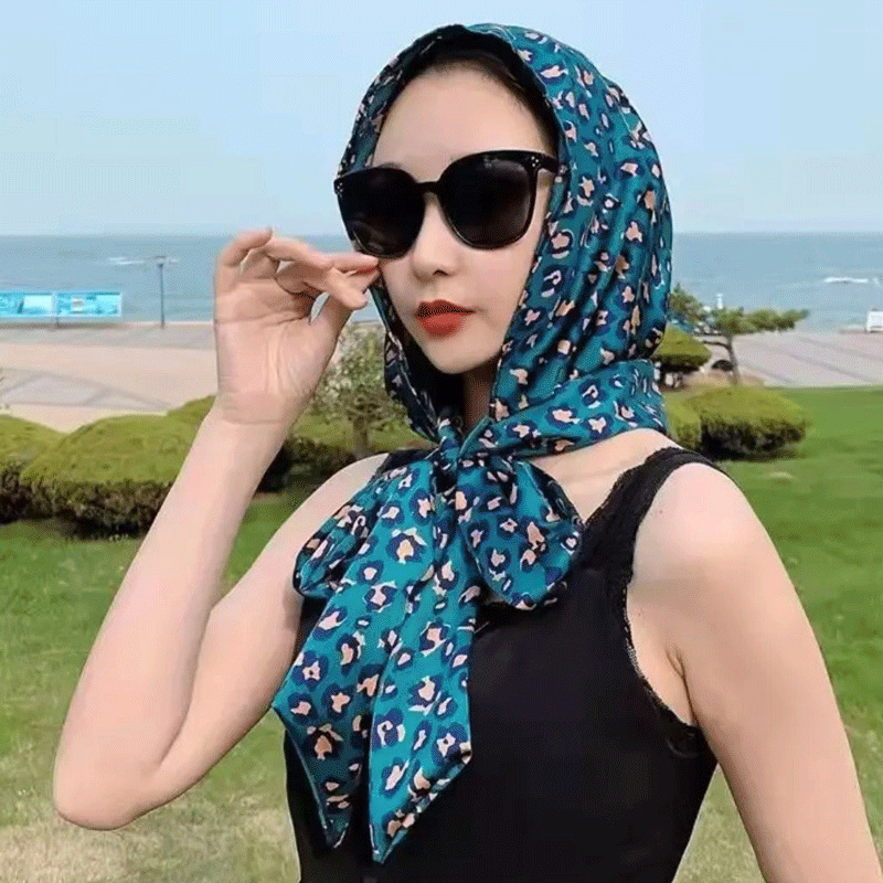 봄과 여름 자외선 차단제 야외 다목적 실크 스카프 모자 쉐이크 톤 같은 스타일 Baotou 모자 여성용 새틴 리본 터틀넥 스카프 모자스토어 가기