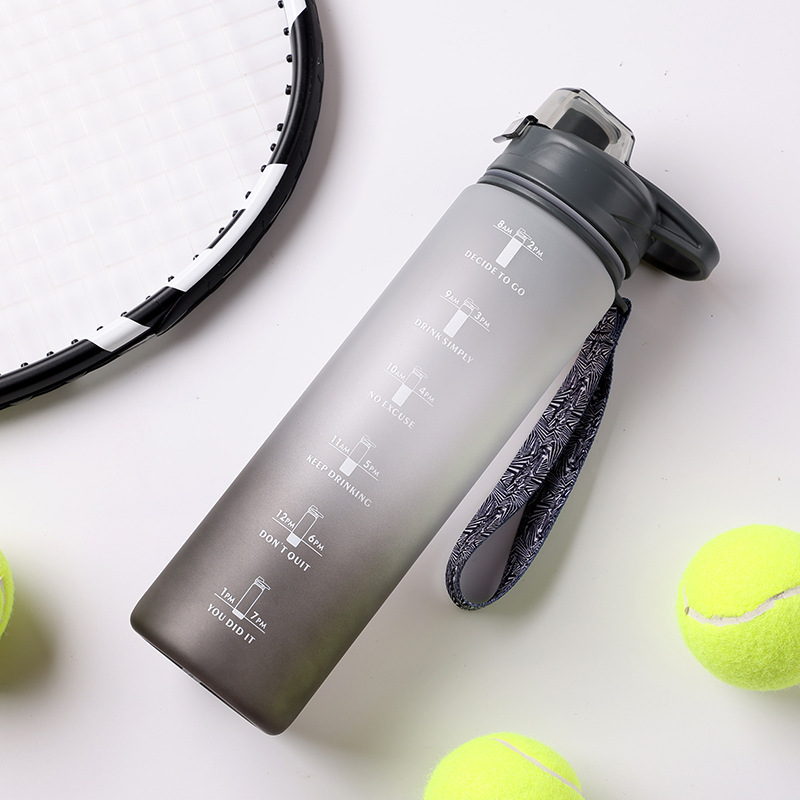 국경 간 뜨거운 판매 여름 1L 대용량 플라스틱 컵 그라데이션 젖빛 스포츠 물 컵 여성과 남성 학생을위한 휴대용 공간 컵
