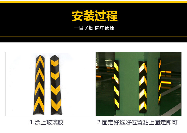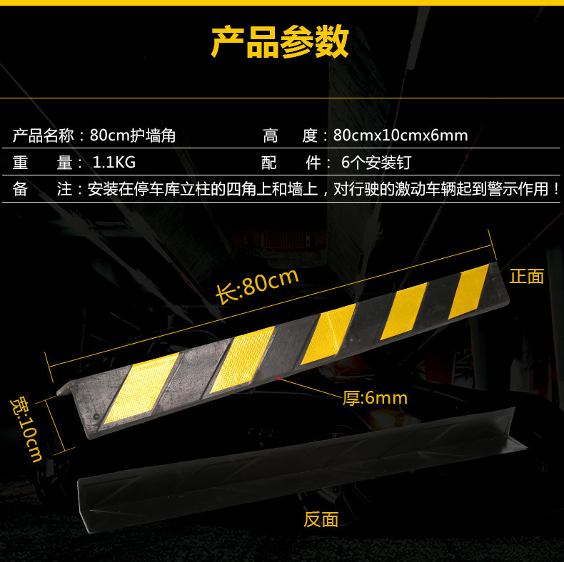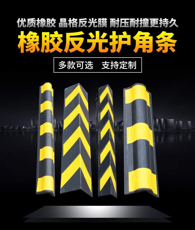 护角条橡胶 地下车库护墙角防撞条反光带橡胶地下室直角警示条