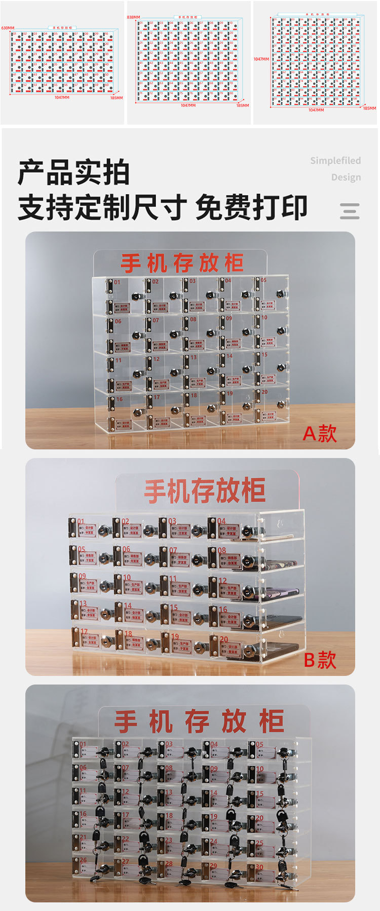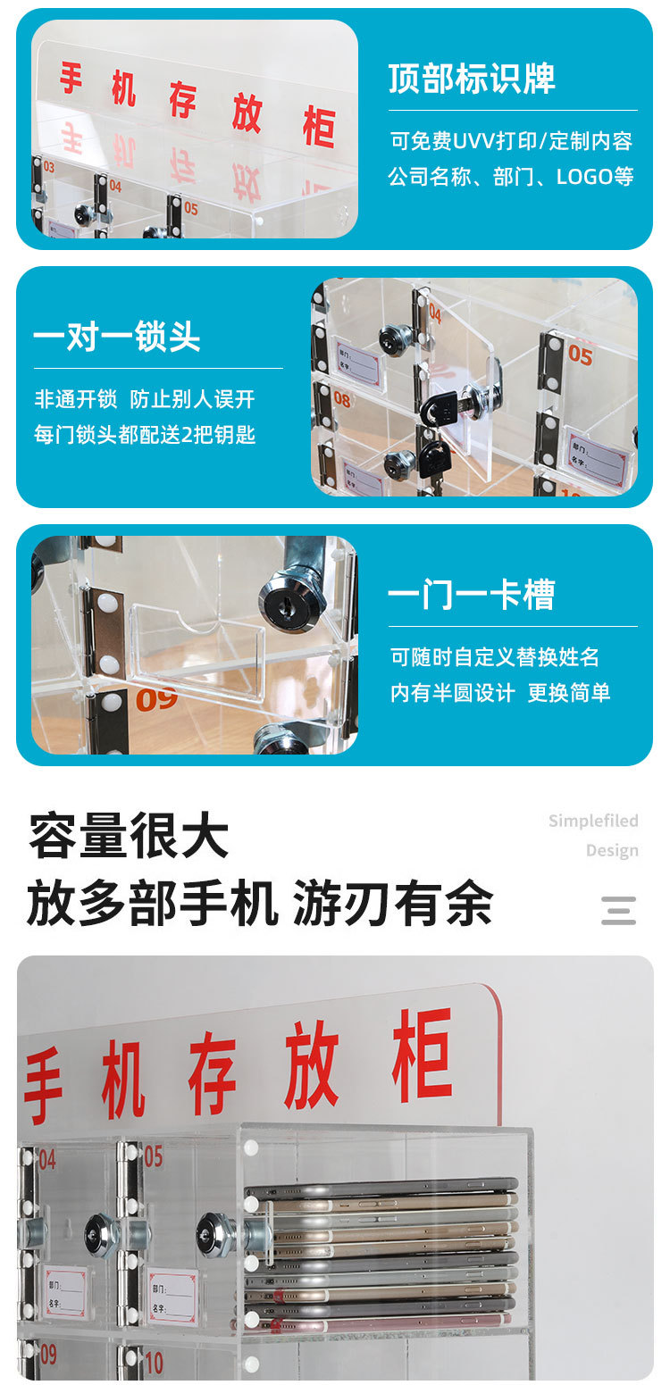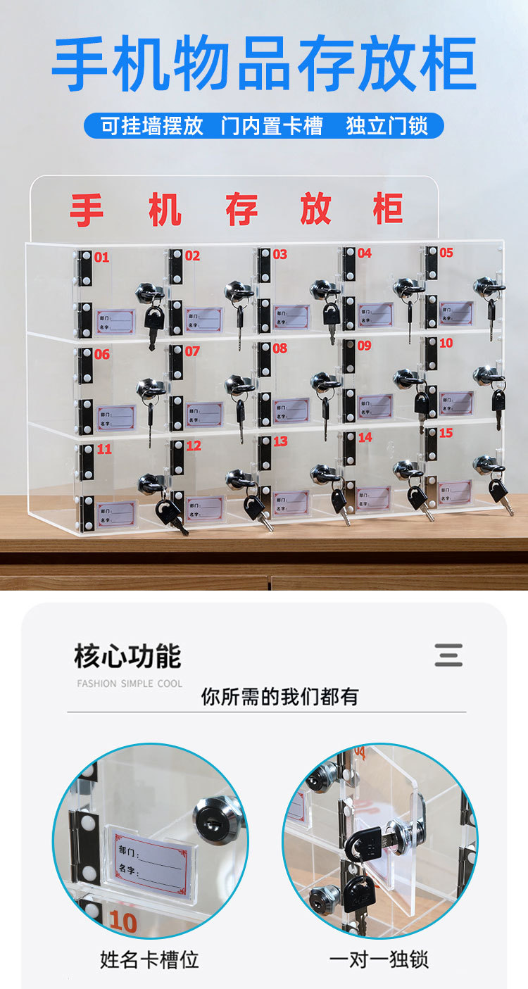 휴대 전화 보관 캐비닛 아크릴 투명 저장 캐비닛 관리 공장 직원 잠금 보관함 보관 캐비닛과 휴대 전화 캐비닛스토어 가기