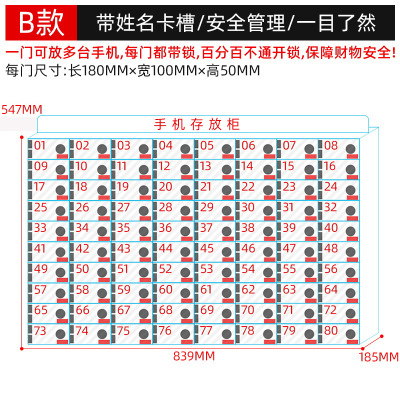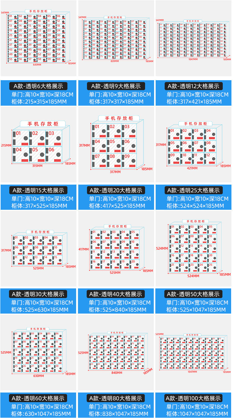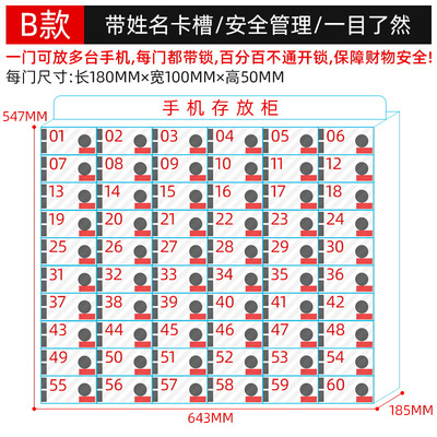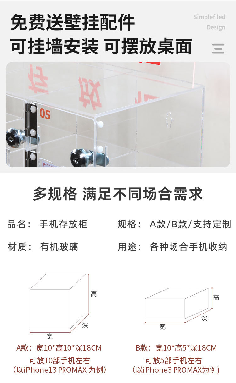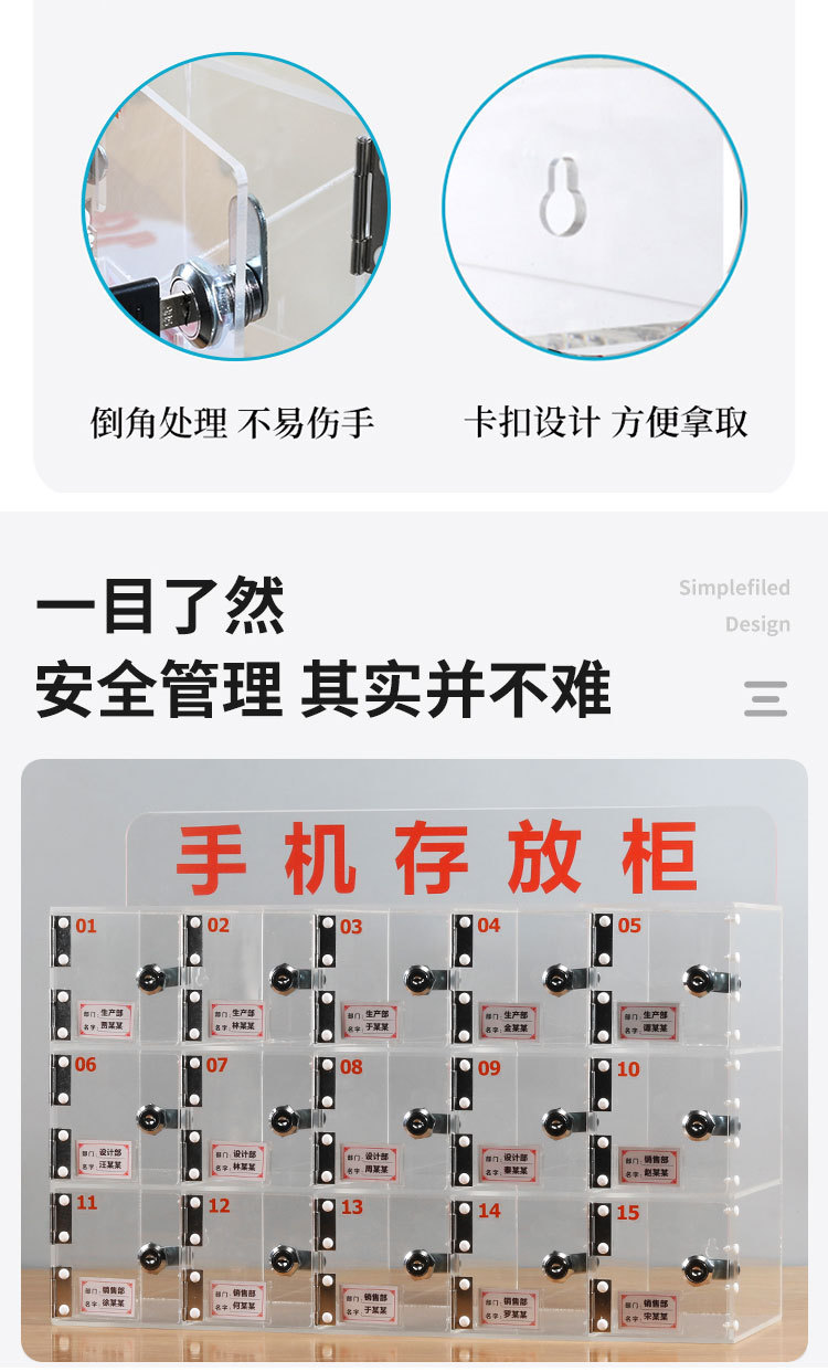 휴대 전화 보관 캐비닛 아크릴 투명 저장 캐비닛 관리 공장 직원 잠금 보관함 보관 캐비닛과 휴대 전화 캐비닛스토어 가기