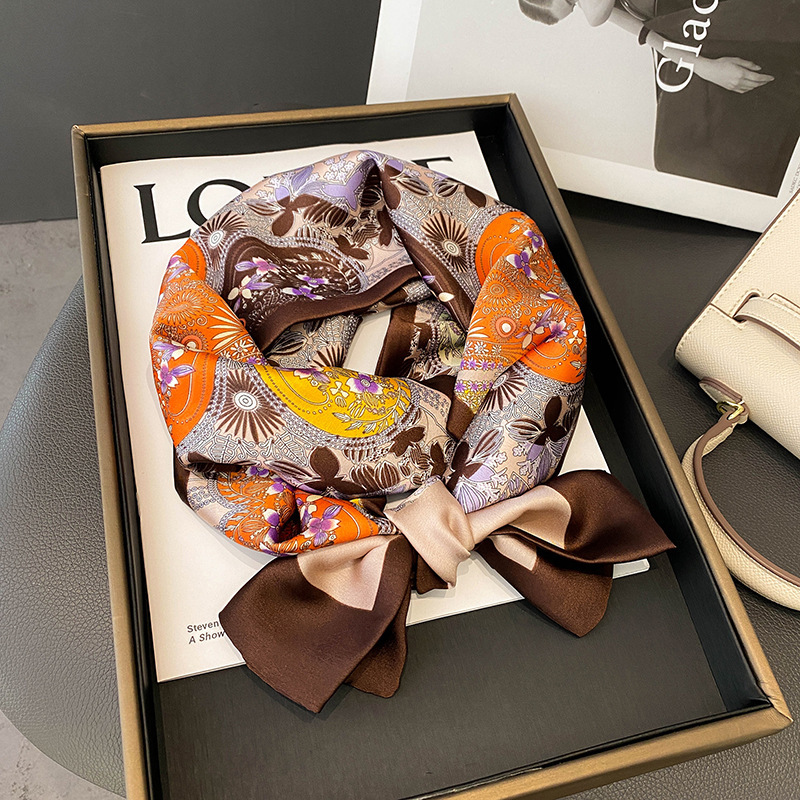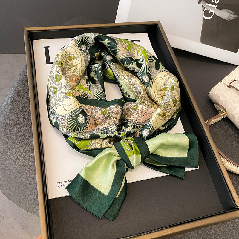 봄과 가을 경량 빈티지 에스닉 스타일 꽃 플랫 앵글 더블 레이어 실크 작은 스카프 실크 스카프 넥타이 가방 여성용 헤어 밴드