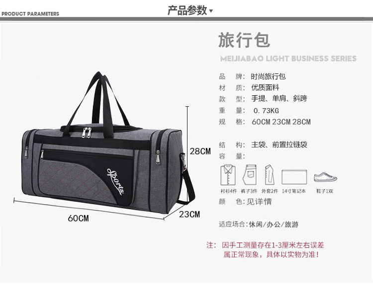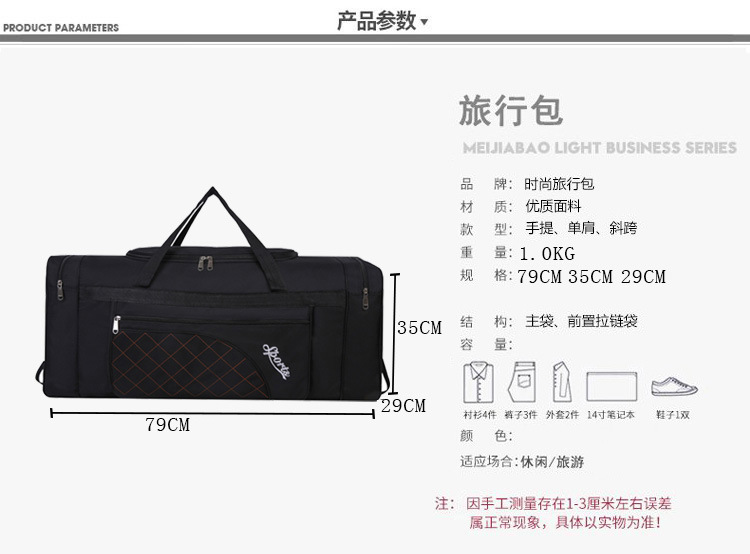 厂家直销,量大优惠,大小款旅行包,多色可选,小号尺寸长60高28宽23,大号长79高35宽29,拍图测量尺寸误差1到2厘米,已包包实际尺寸为准,包包可容纳衣服鞋子生活用品等,外出旅行,出差,学生返校的优选包包,undefined