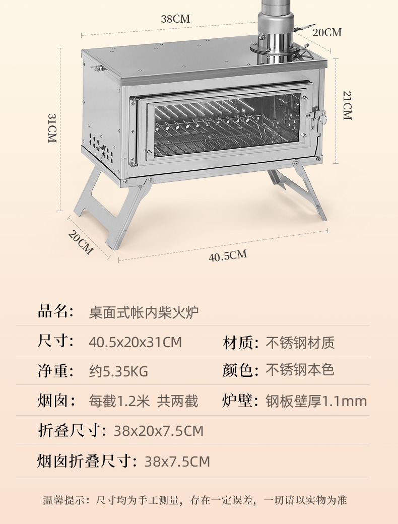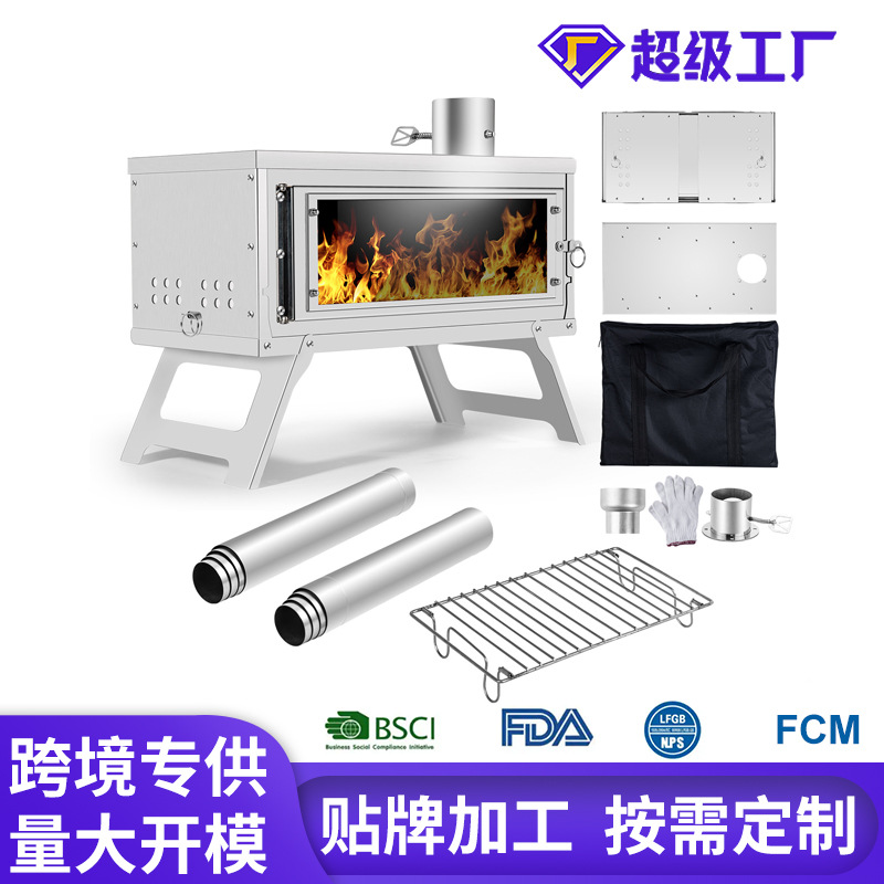 야외 굴뚝 텐트 스테인레스 스틸 나무 스토브 캠핑 휴대용 경량 난방 스토브 피크닉 도구 굴뚝