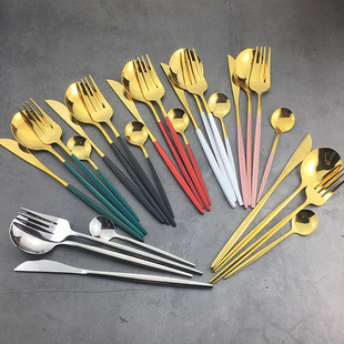 1010 식기 서양 음식 칼과 포크 스푼 뾰족한 스푼 둥근 스푼 호텔 스테이크 나이프와 포크 케이크 삽 긴 손잡이 커피 믹싱 스푼