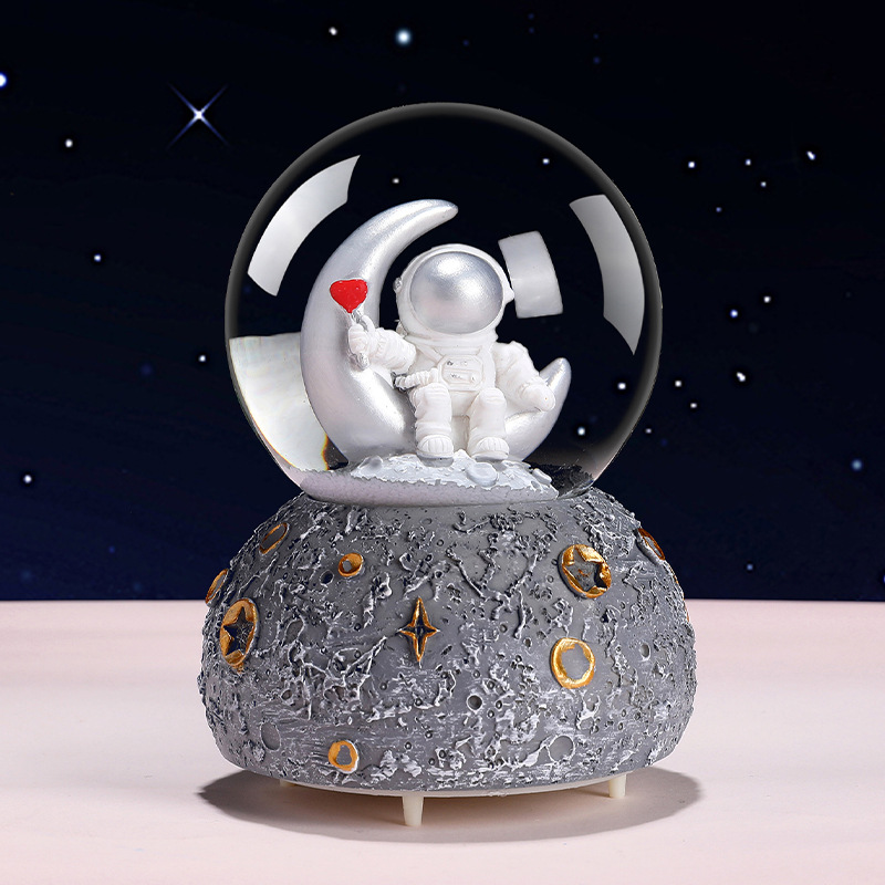 우주 비행사 크리스탈 볼 장식품 성간 우주 비행사 뮤직 박스 컬러 라이트 눈 우주 비행사 뮤직 박스 장식품