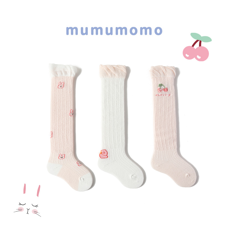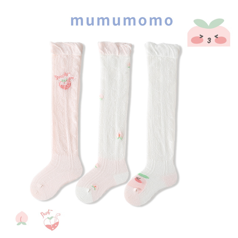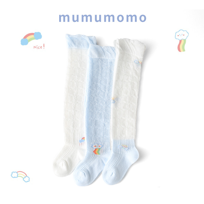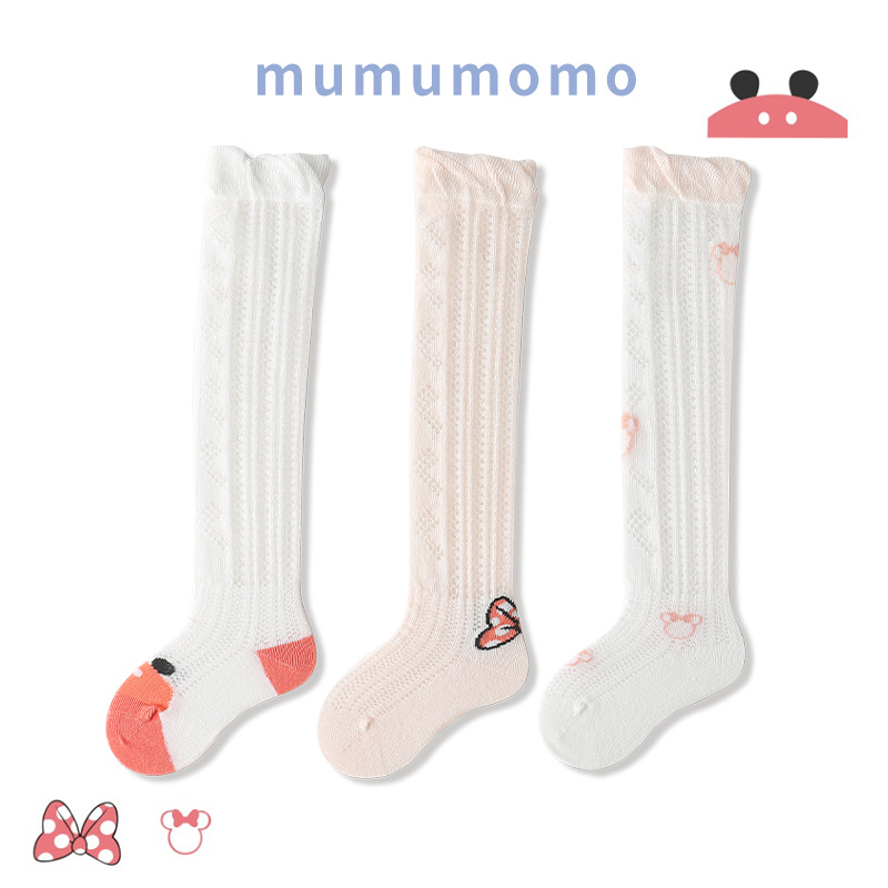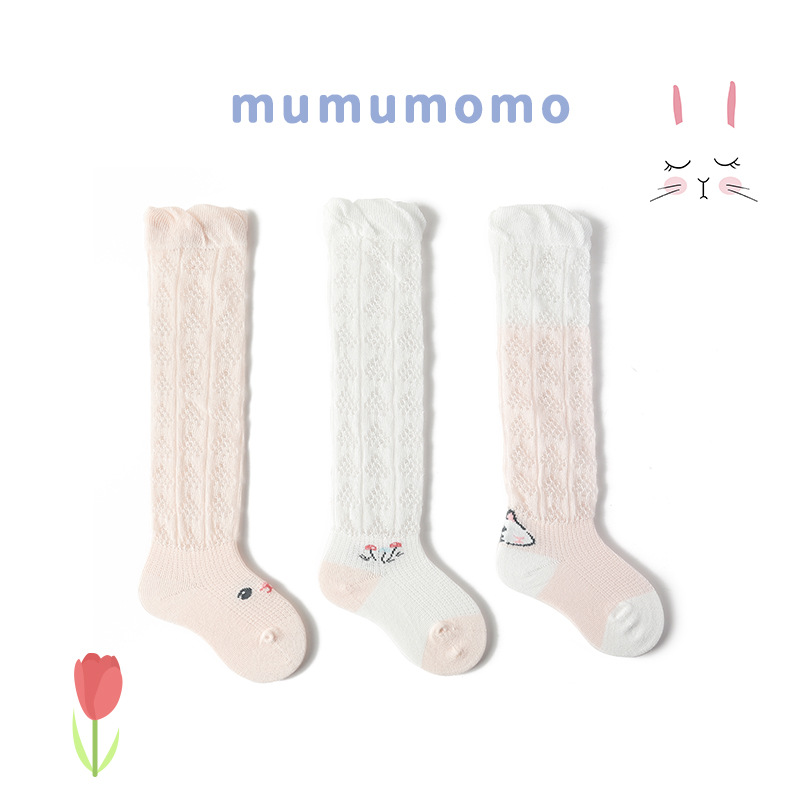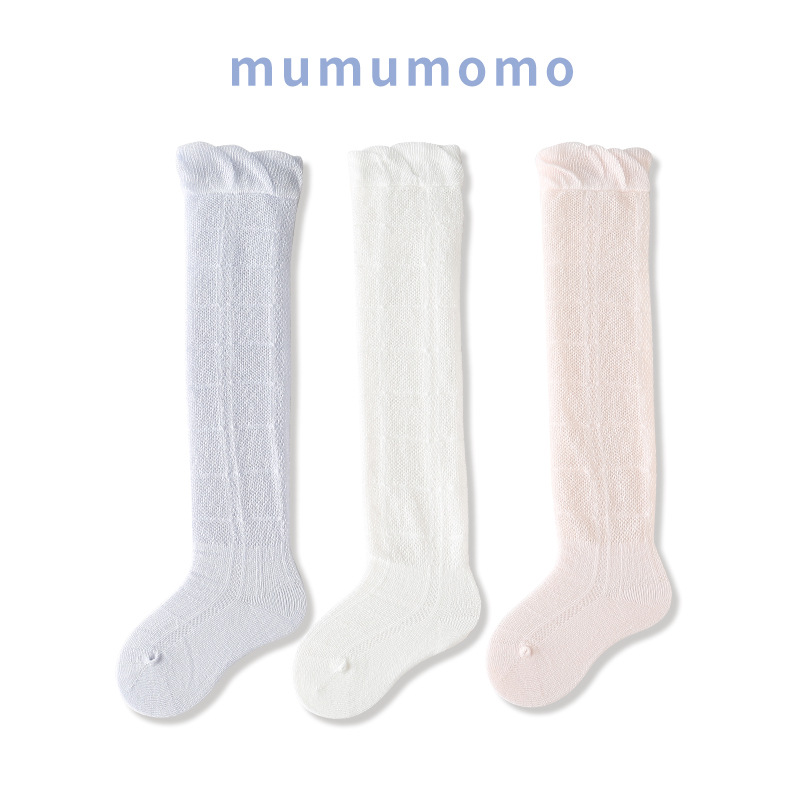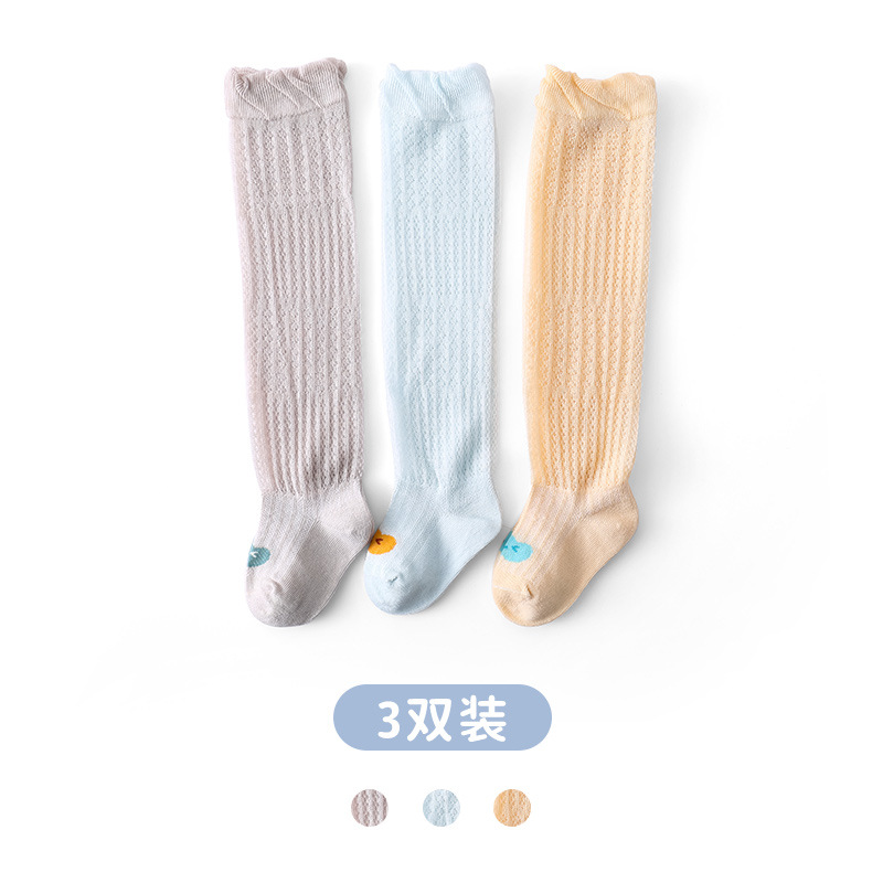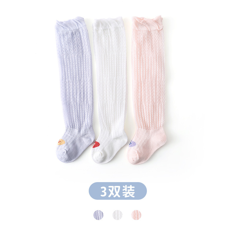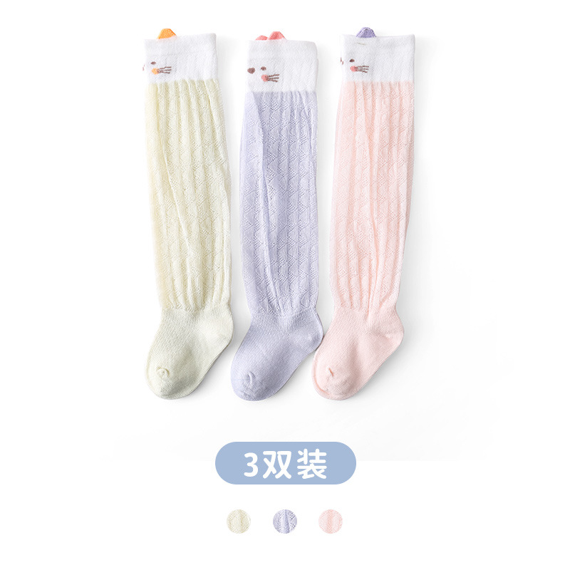 봄과 여름 새로운 아기 모기 방지 양말 메쉬 중공 긴 튜브 아기 양말 순면 핑크 여자 신생아 양말