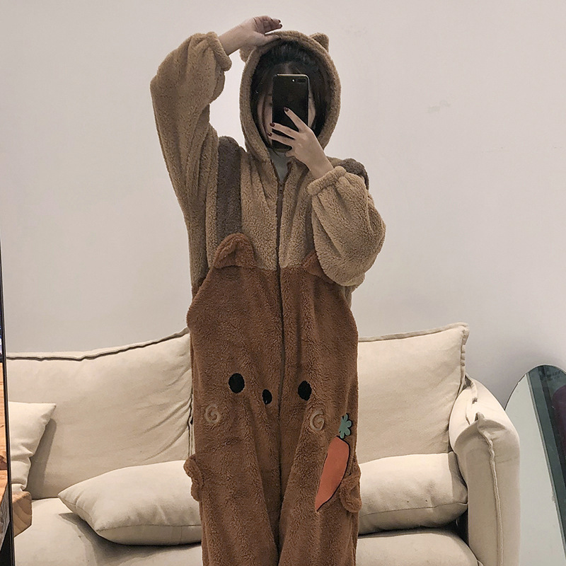 겨울 부드러운 소녀 곰 잠옷 여자의 두꺼운 산호 양털 귀여운 원피스 잠옷 만화 복장스토어 가기