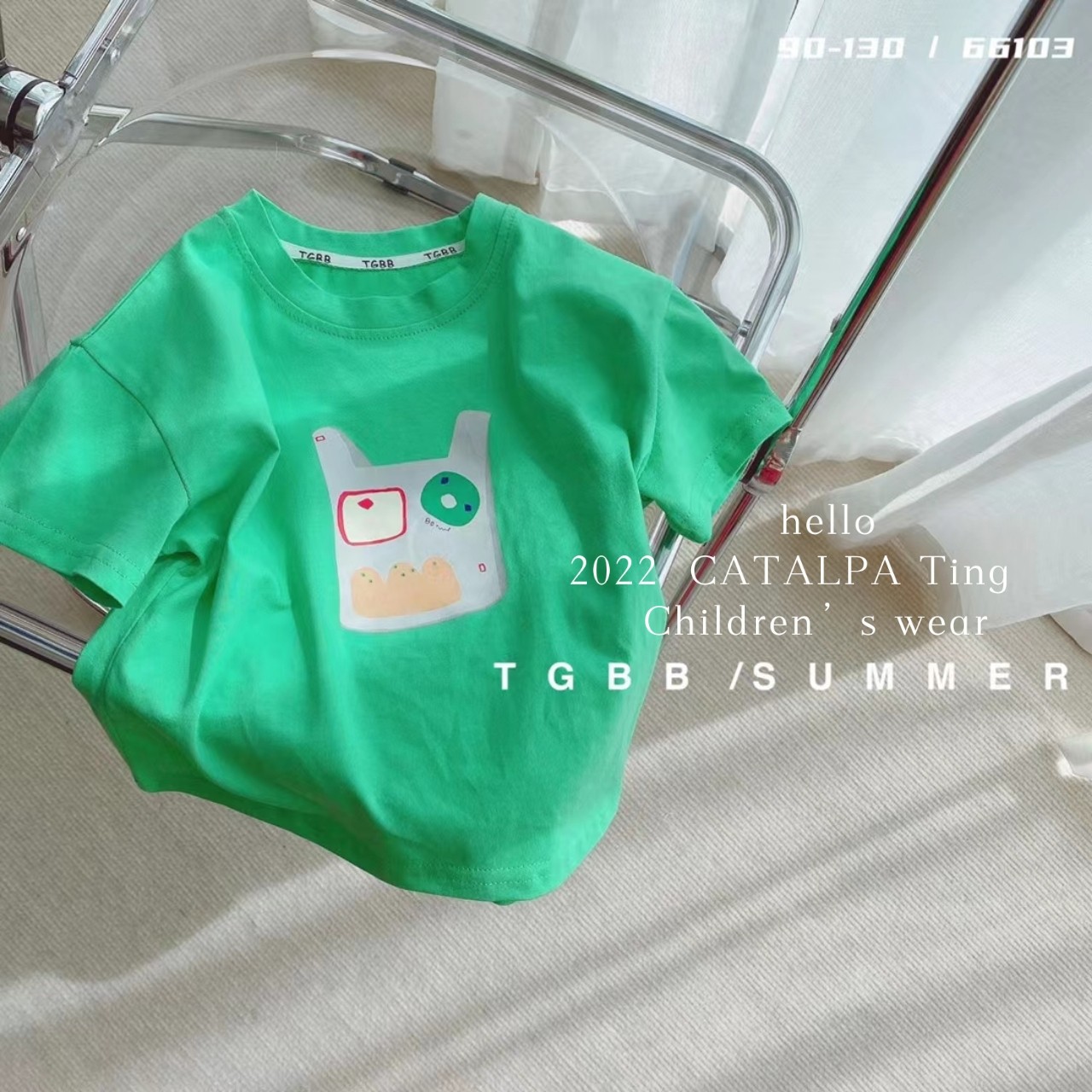 2024 여름 어린이 반팔 티셔츠 소년 소녀 얇은 한국 아동복 만화 인쇄 아동복 도매 의류 조수