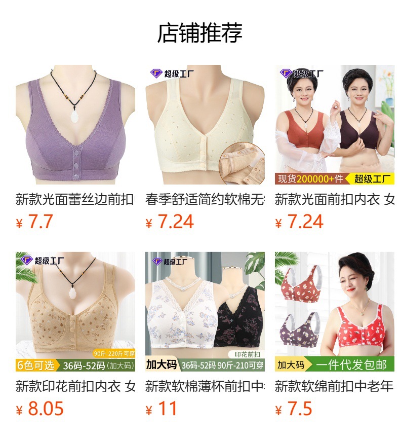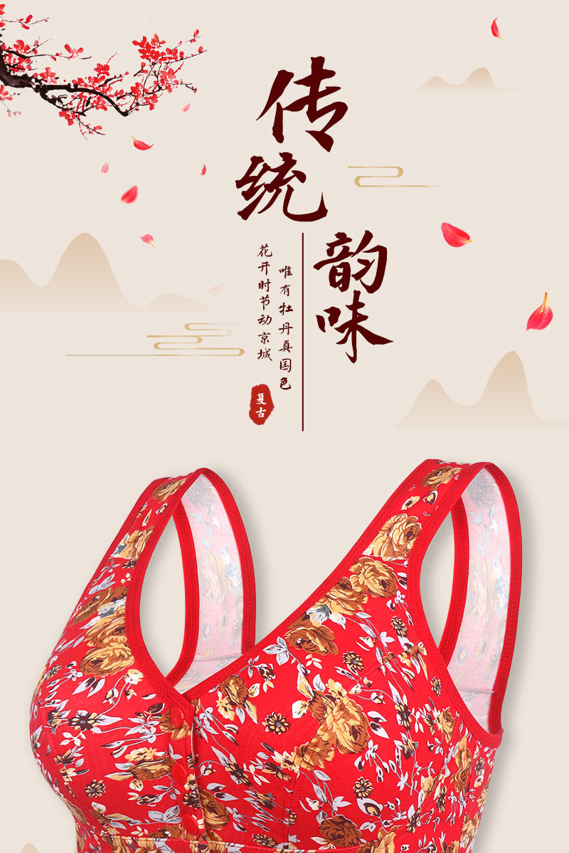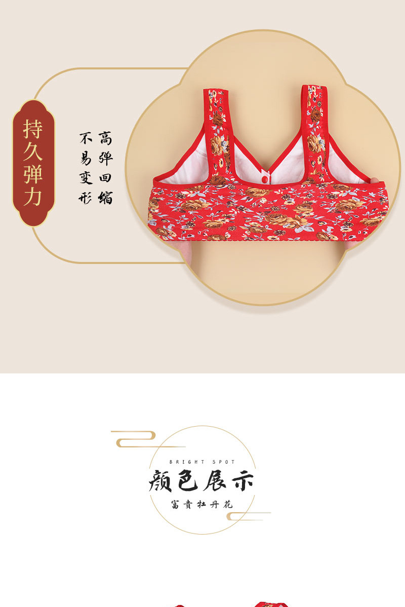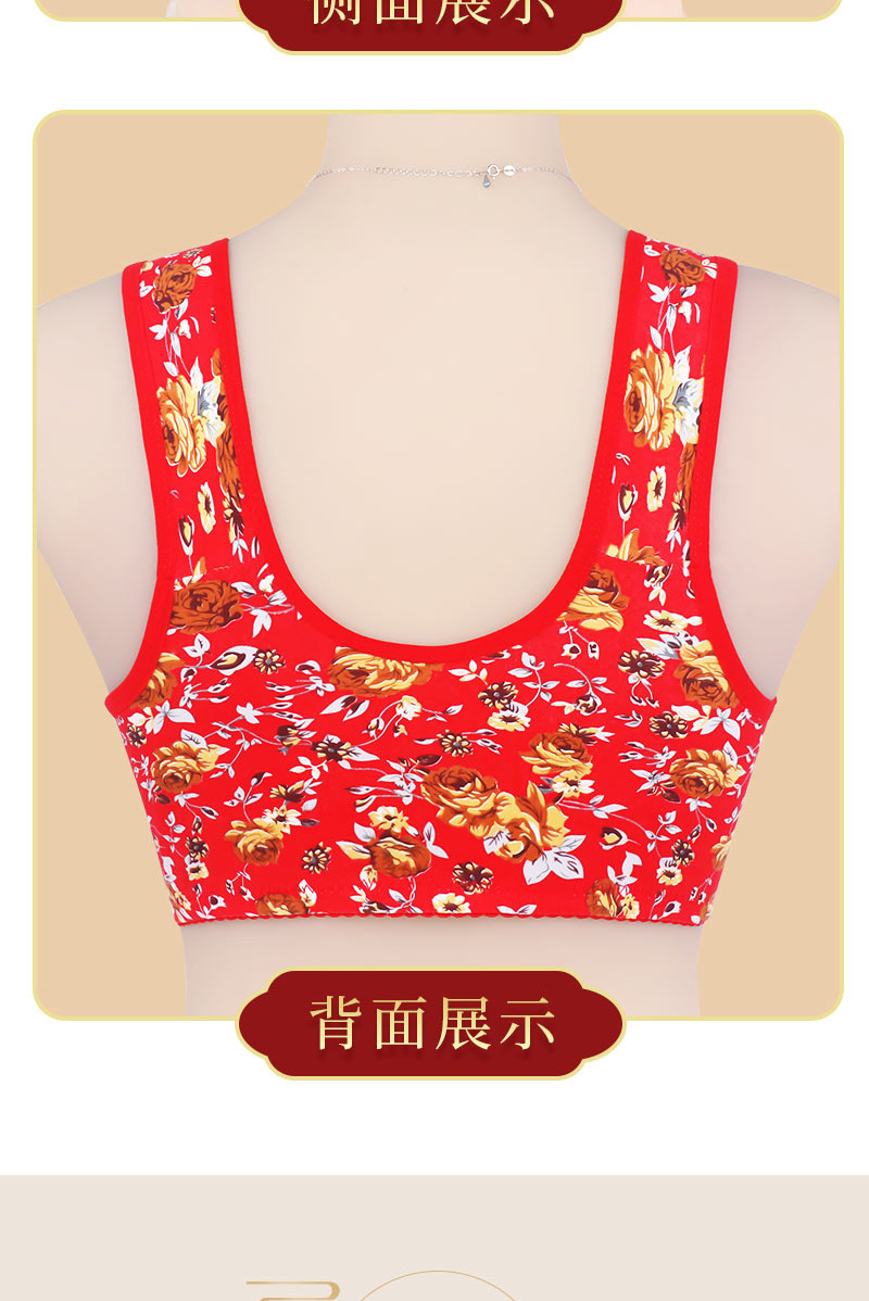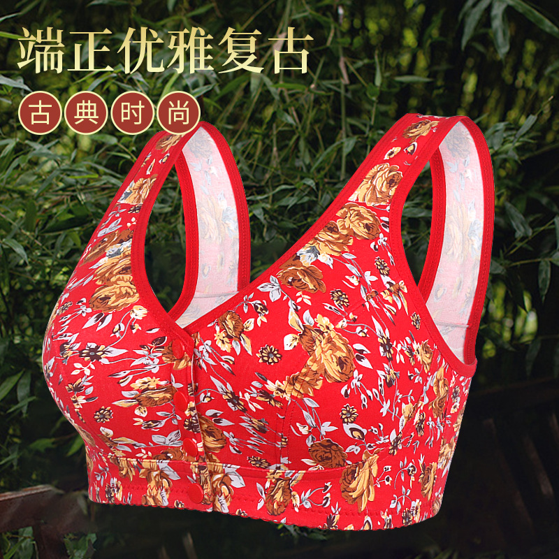 여성용 새 프린트 프론트 버튼 속옷, 부드러운 면 조끼 스타일, 중년 및 노인 브래지어, 여성용 대형, 와이어 프리 속옷스토어 가기