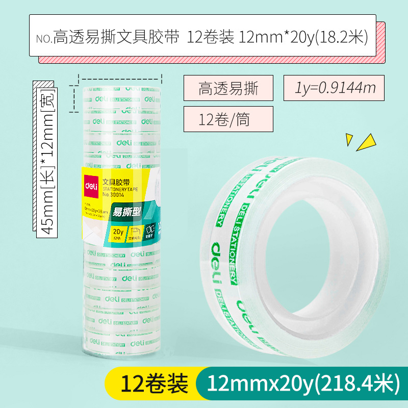 • 30014(12 롤/실린더) 12mm * 20y 투명 테이프