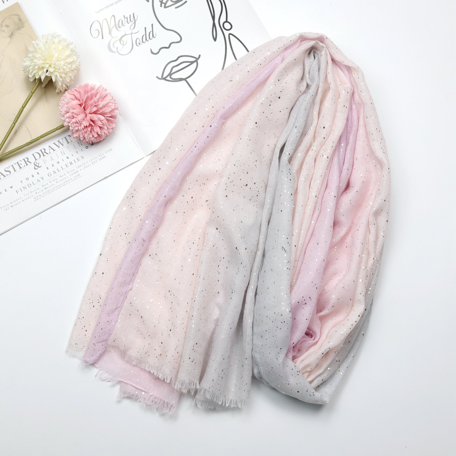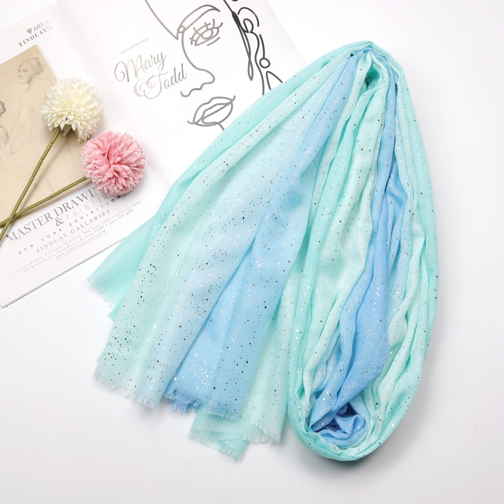 대외 무역 유럽과 미국 국경 청동 그라디언트 무지 긴면 부드러운 손 봄과 여름 거즈 여성 패션 스카프 터번스토어 가기