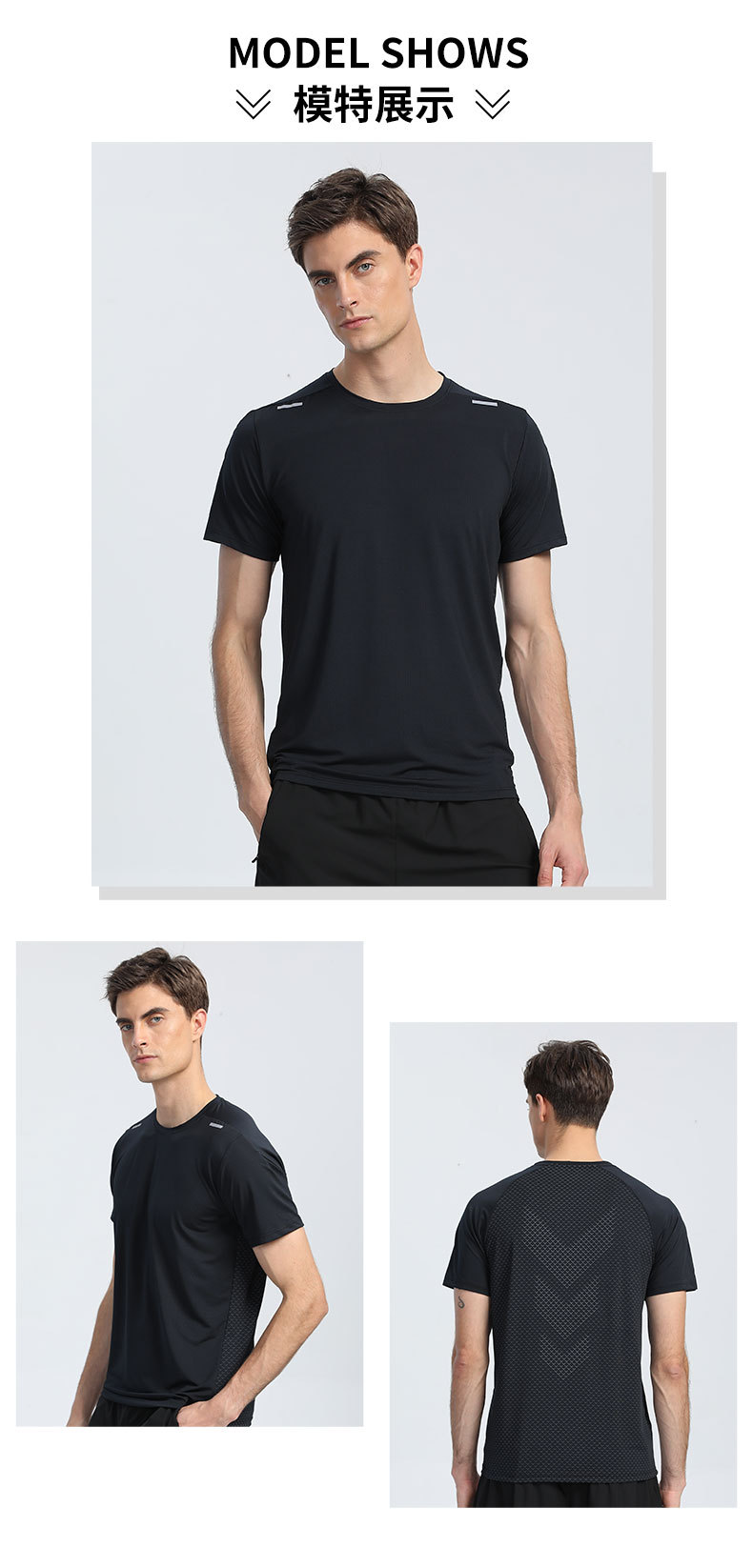 새로운 단색 인쇄 러닝 피트니스 의류 반팔 남성용 티셔츠 땀 흡수 속건 의류 라운드 넥 반사 스트립 스포츠 탑