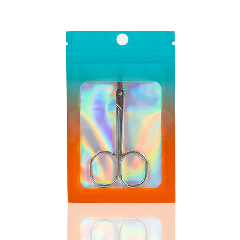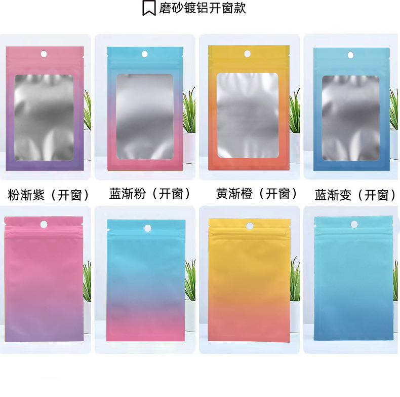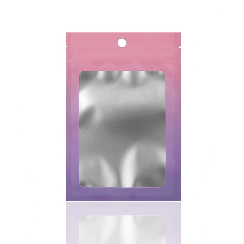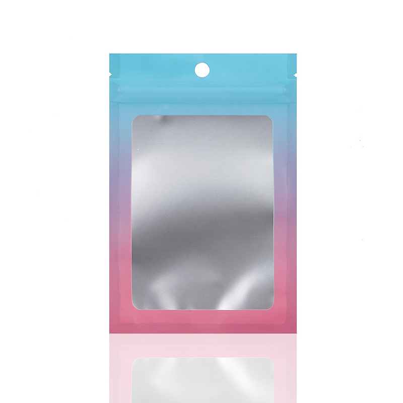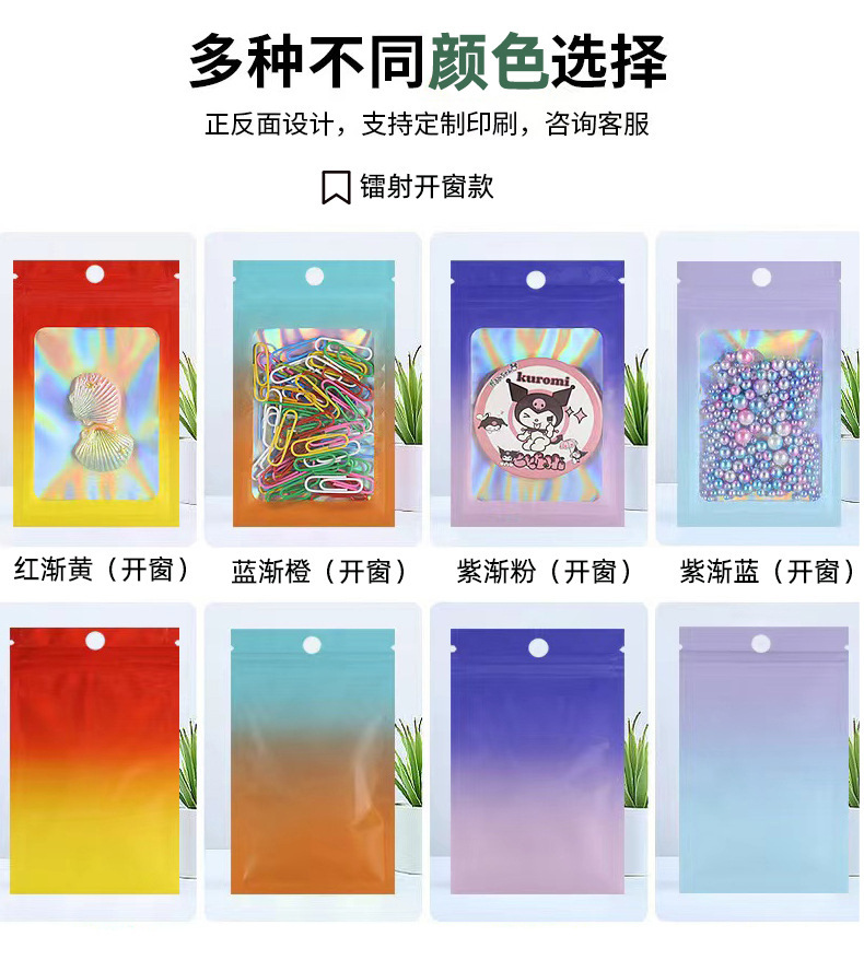 컬러 레이저 그라데이션 투명 창문형 가방 양면 알루미늄 호일 가방 보석 포장 가방 지퍼백 고투명 무광