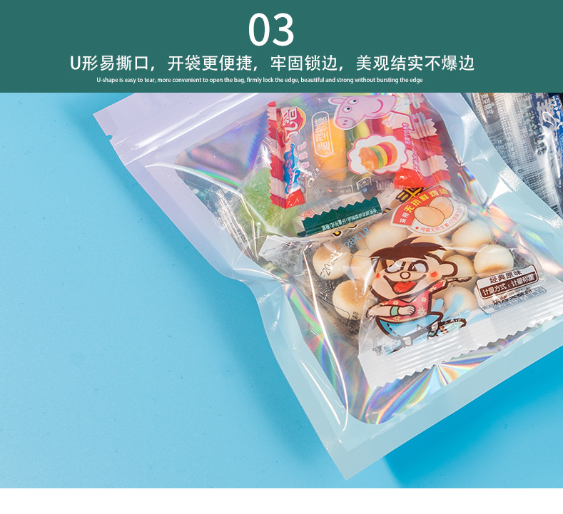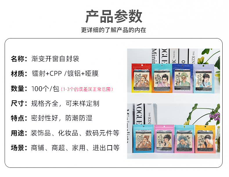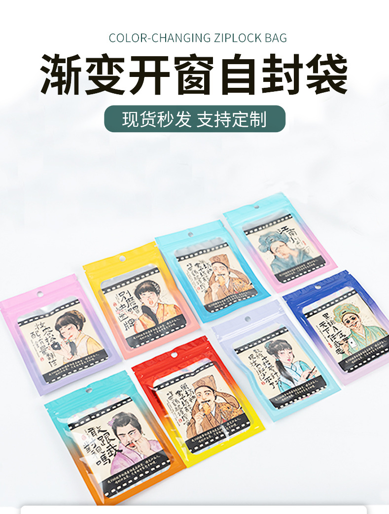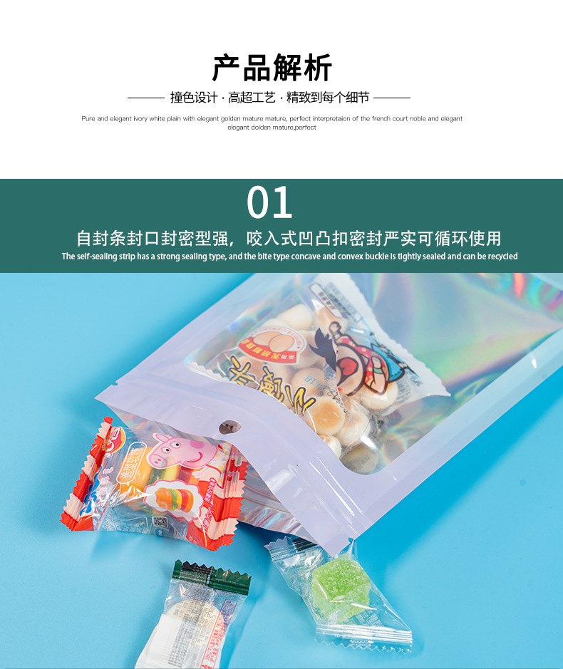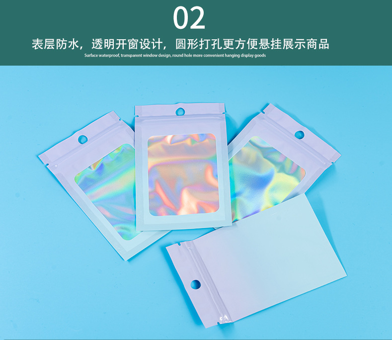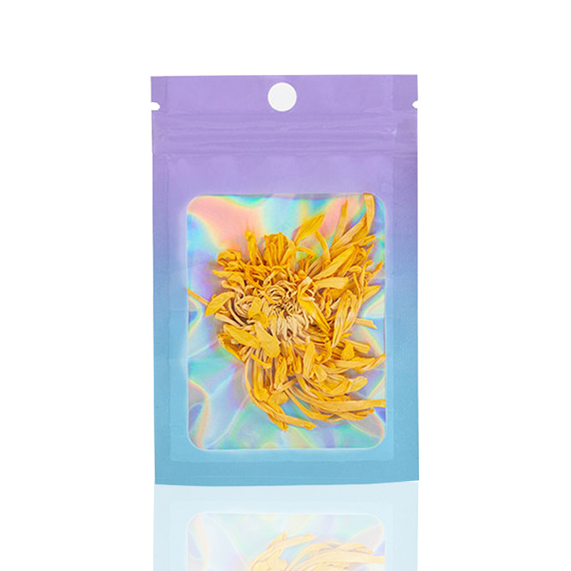 컬러 레이저 그라데이션 투명 창문형 가방 양면 알루미늄 호일 가방 보석 포장 가방 지퍼백 고투명 무광