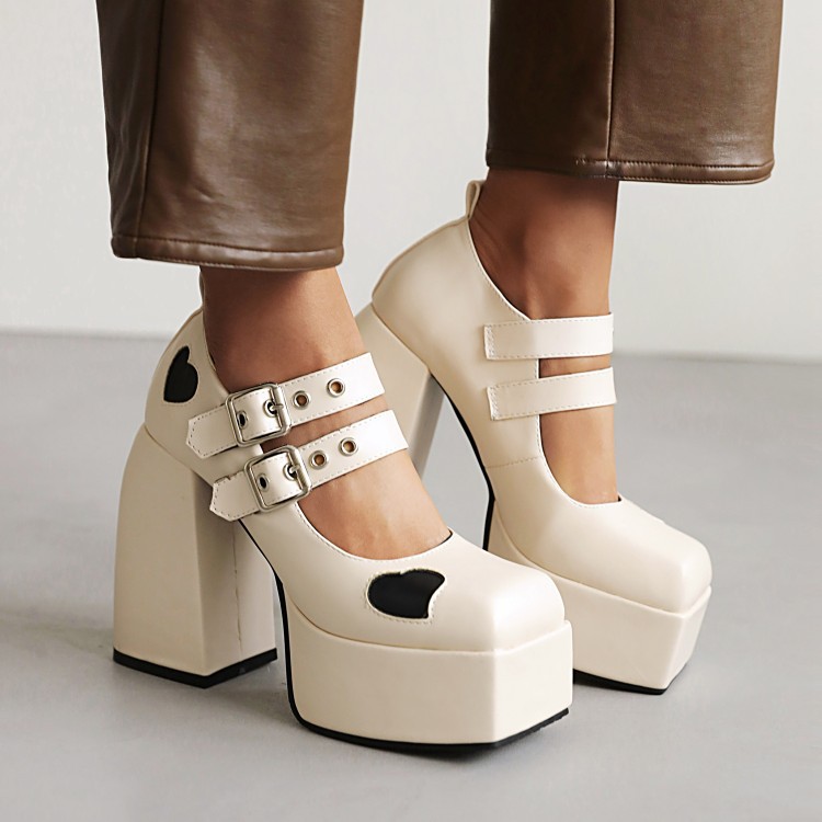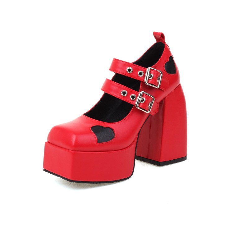Wish 크로스 국경 대외 무역 대형 신발 여성용 유럽 및 미국 스퀘어 헤드 및 패션쇼 패션 신발 여성용 두꺼운 굽 방수 플랫폼 싱글 신발스토어 가기