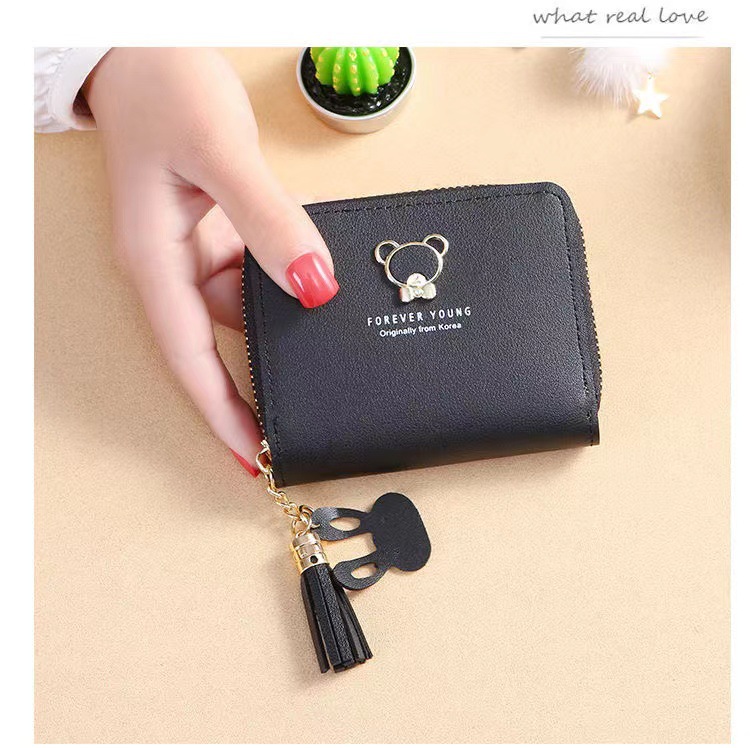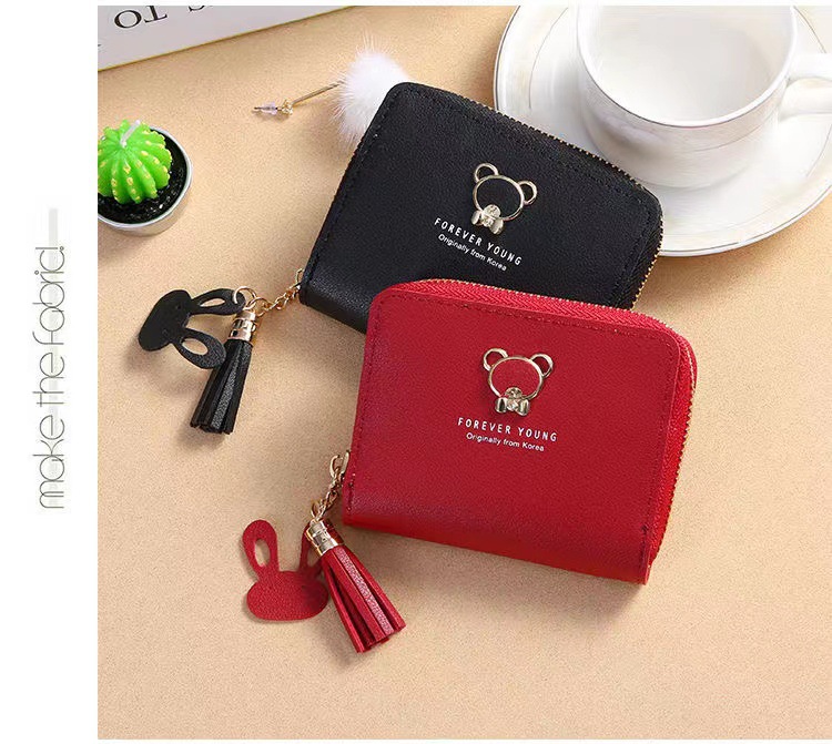 제조 업체 새로운 자리 숙녀 지갑 여성 짧은 만화 귀여운 곰 술 여성 학생 동전 지갑 지퍼 가방
